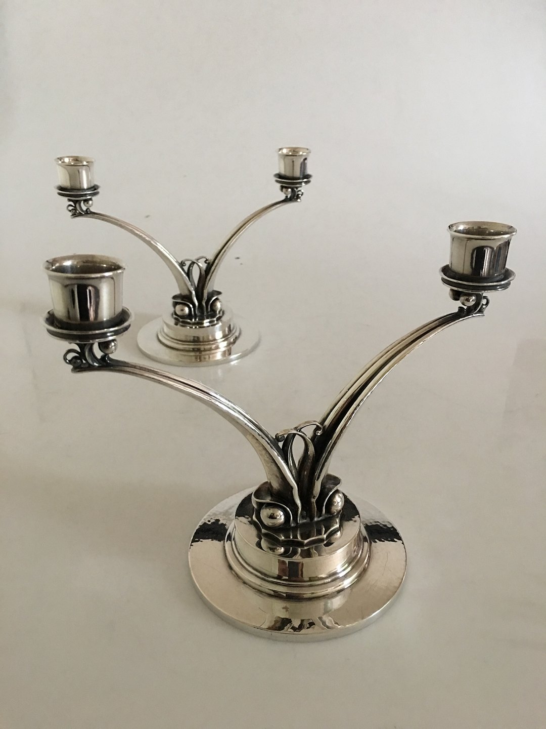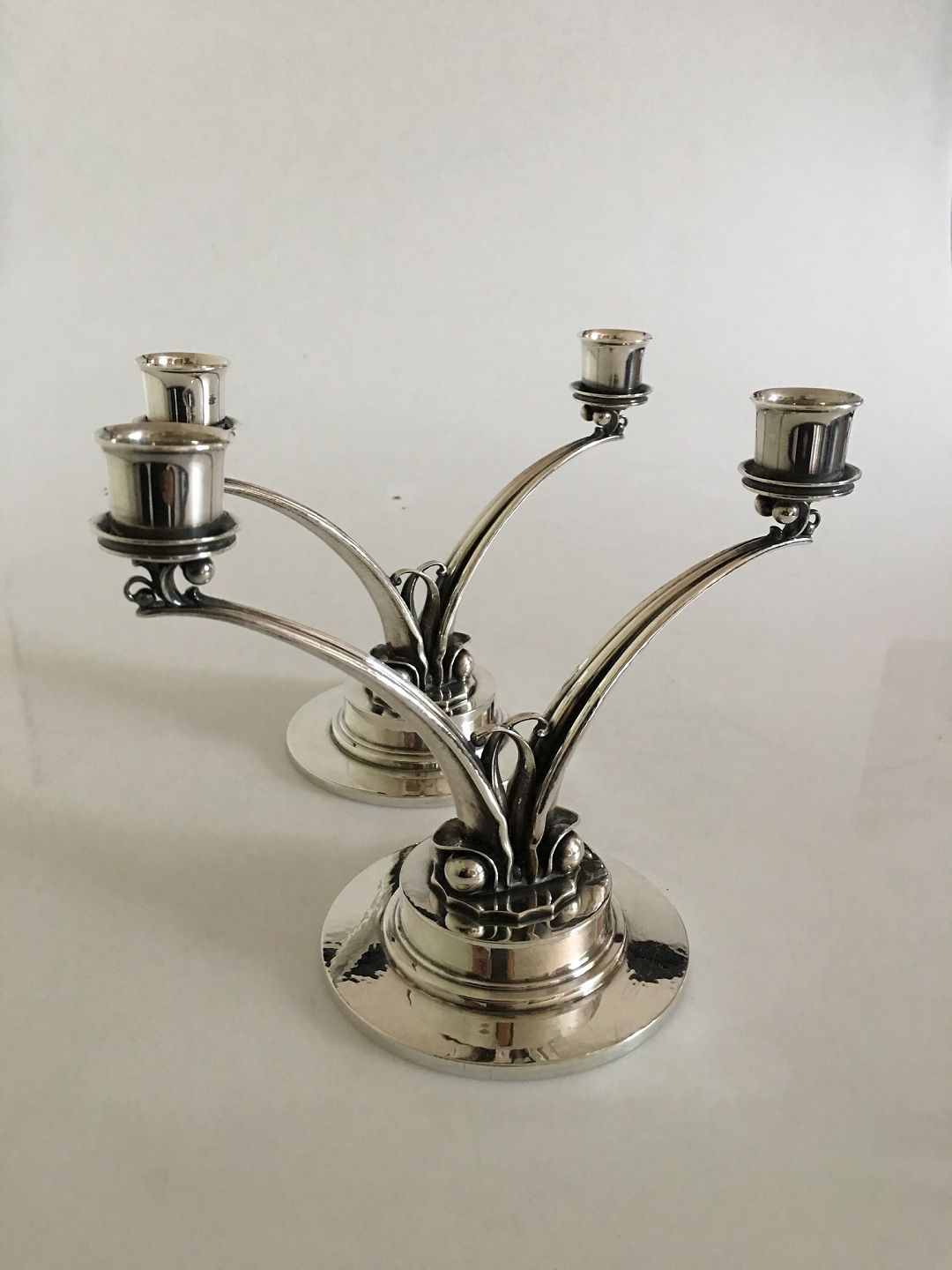 Georg Jensen Sterling Sølv Harald Nielsen Stager No. 278. 15 cm Høje. Vidde ca 19.5 cm. Eksemplarer fra efter 1945 i pæn stand