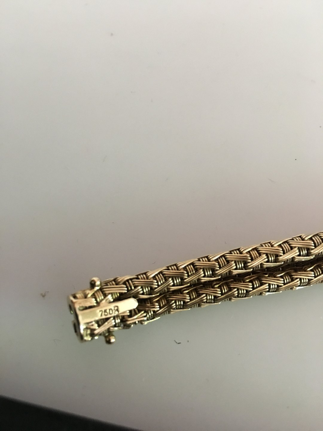 Georg Jensen & Wendel 18K Gold Bracelet. From 1945-1951. Measures 19 cm / 7 31/64 in. x 1 cm / 0 25/64 in. wide. Weighs 39 g / 1.40 oz.