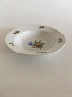 Royal Copenhagen Antik Dyb Tallerken med Blomsterdekoration. 23 cm dia. Det håndmalede motiv er i nogenlunde stand. Ellers er tallerkenen klinket to steder hvor der er hårrevner i bunden og på kanten.