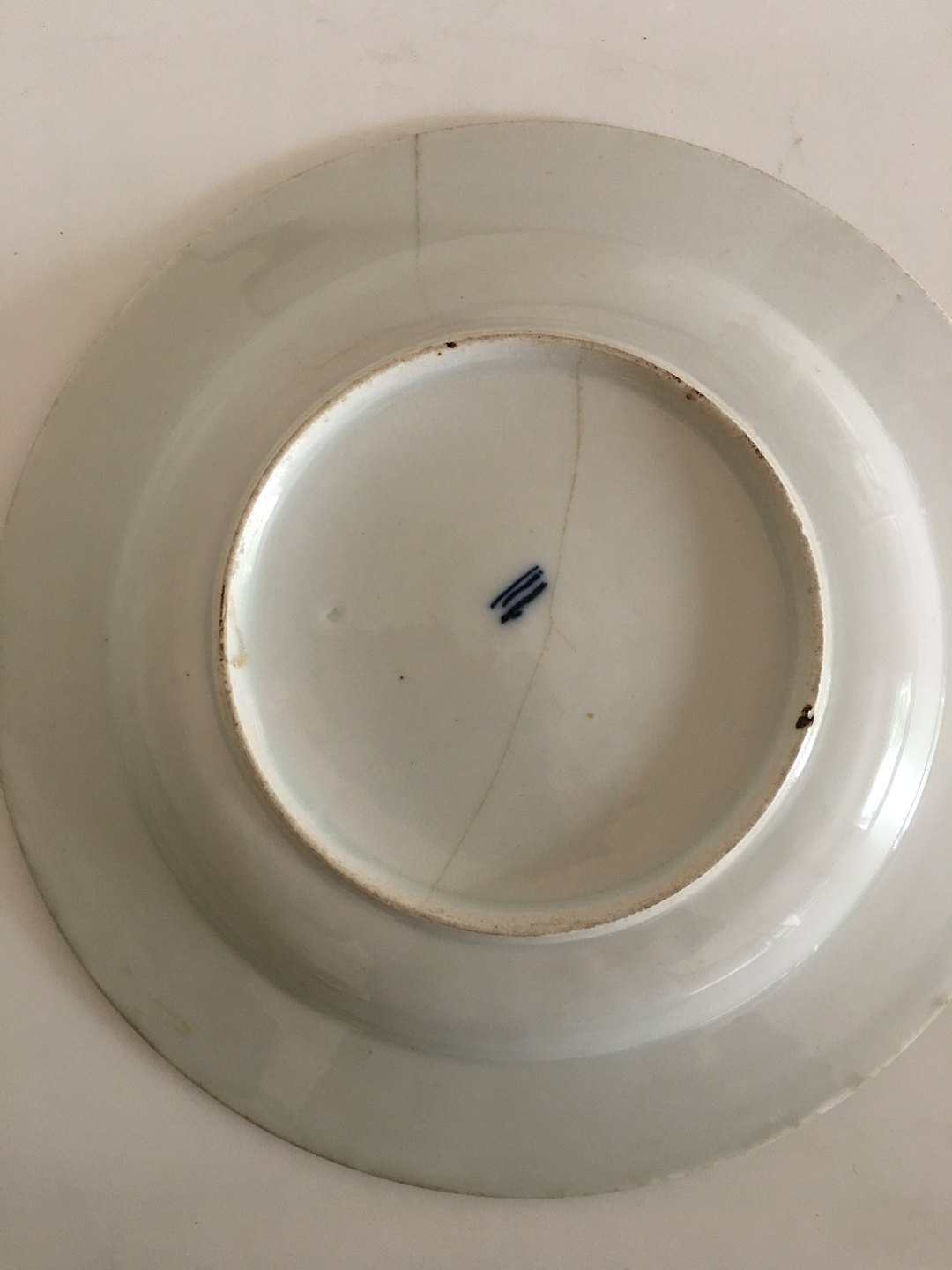 Antik Royal Copenhagen Tallerken med Blomsterdekoration 1790-1810. Porcelænet er en del slidt. Ligesom blomstermotivet er en del falmet. Har to kraftige hårstrejf på tværs af tallerknen. Måler 24.5 cm