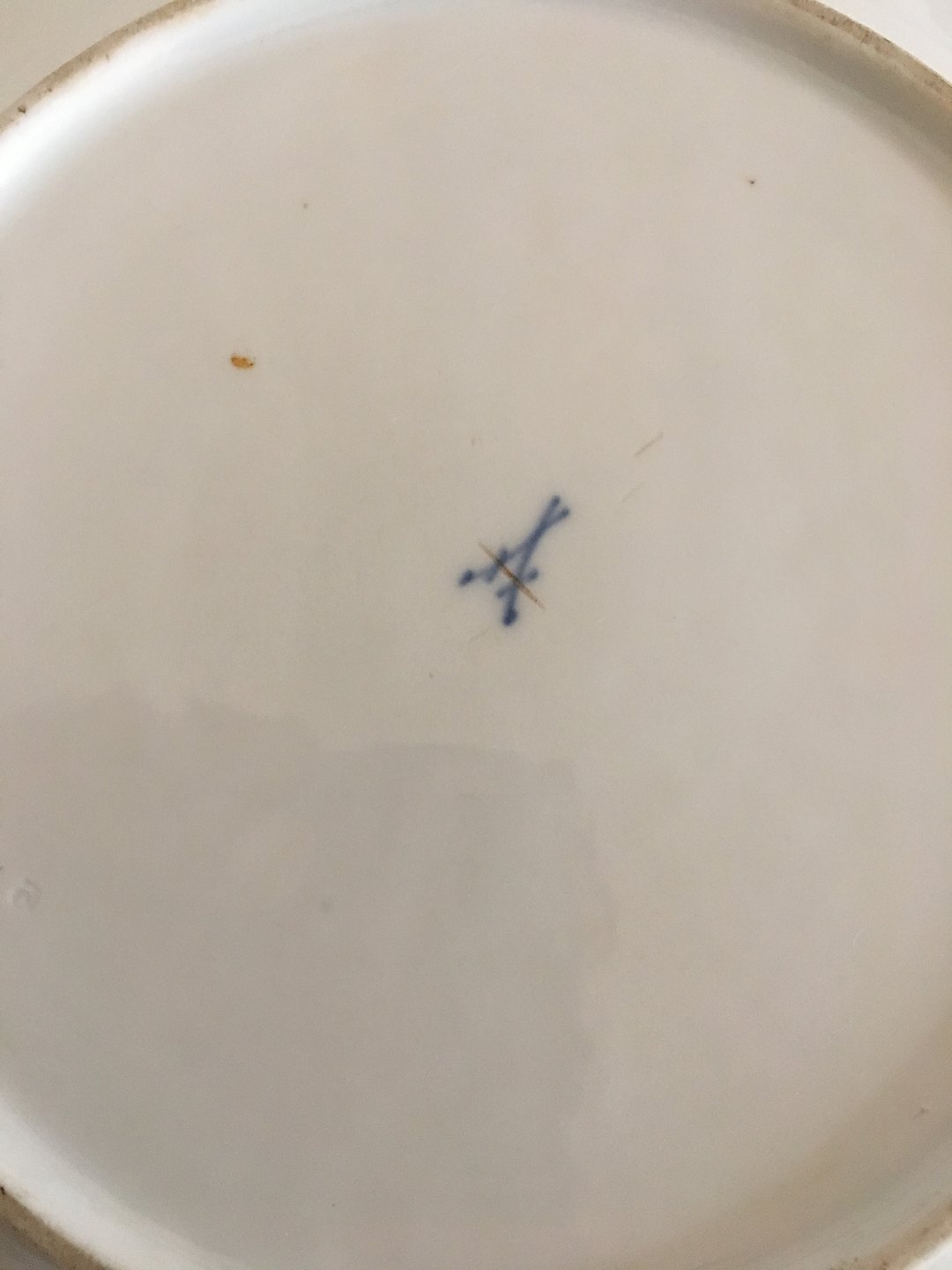 Meissen Spisetallerken med Blomsterdekoration. 23.5 cm dia. Tallerkenen er uden skår, men har noget slid på blomsterdekorationen, samt det meste af den originale guldkant som mere eller mindre er slidt helt af.