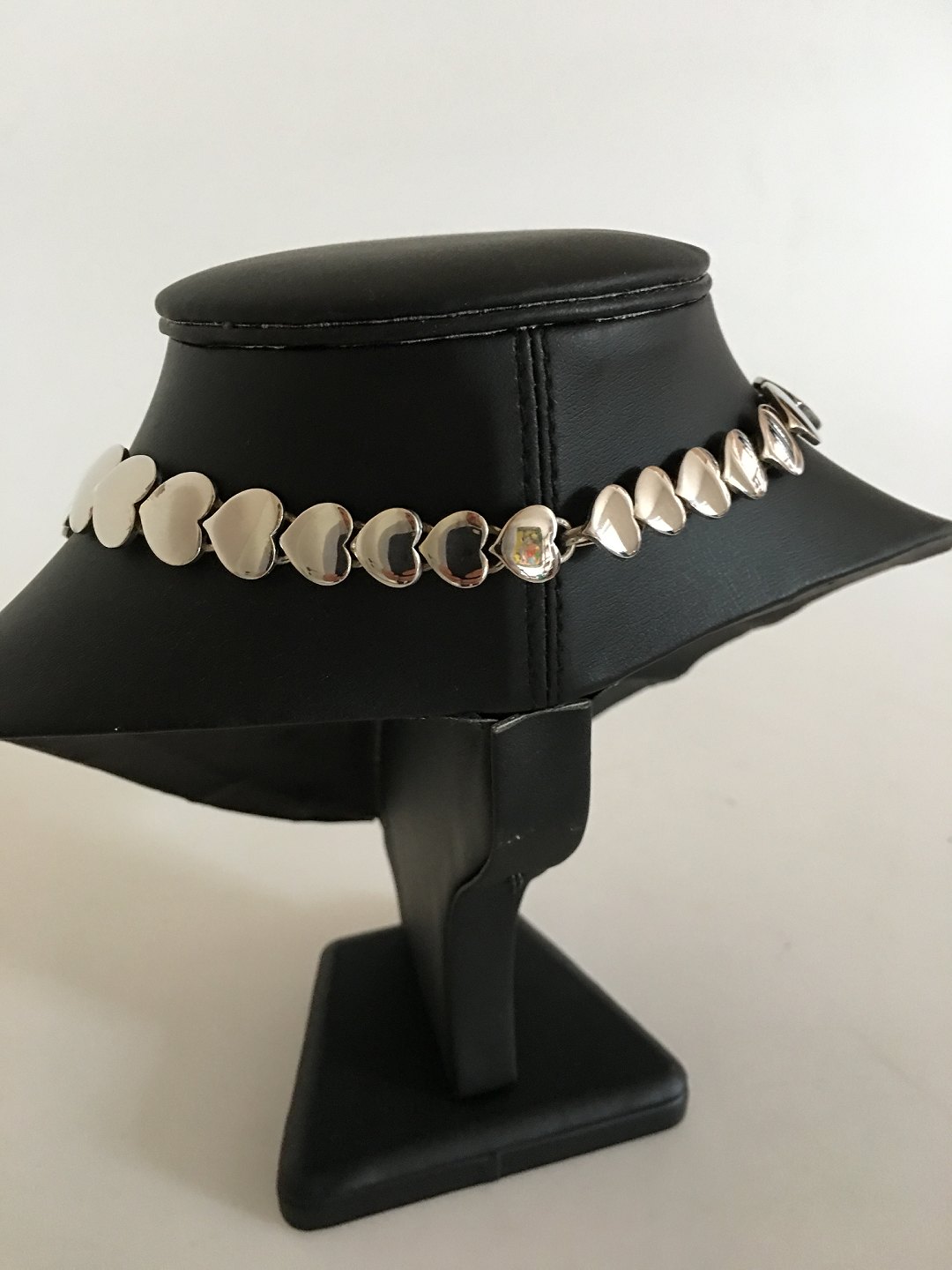 Hans Hansen Sterling Sølv Hjertehalskæde. 46 cm L. Måler på sit bredeste 2.5 cm B. Vejer 105 gram.