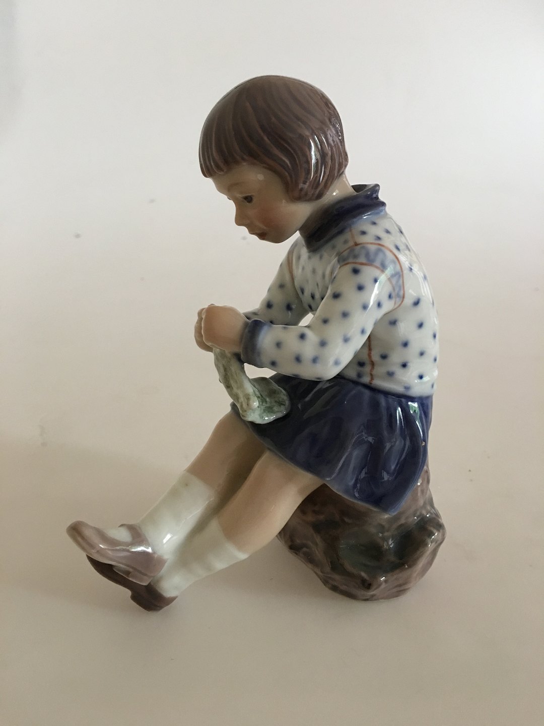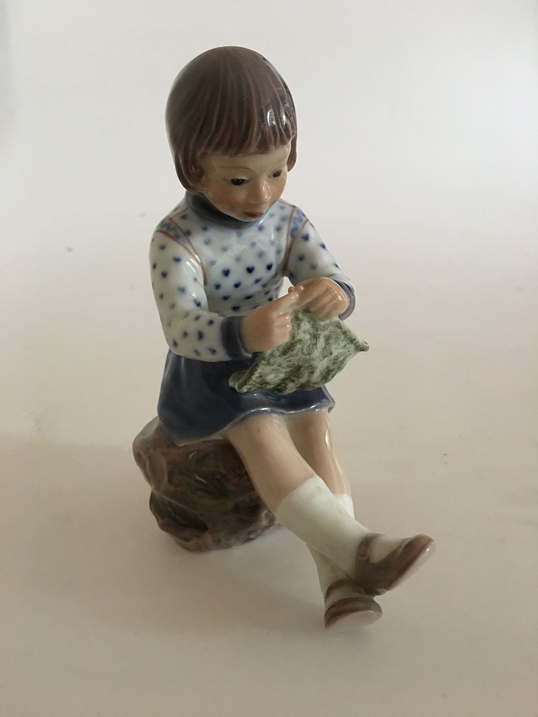 Dahl Jensen Porcelænsfigur af Strikkende Pige No. 1197. Måler 15 cm. 1. Sortering, i fin hel stand.