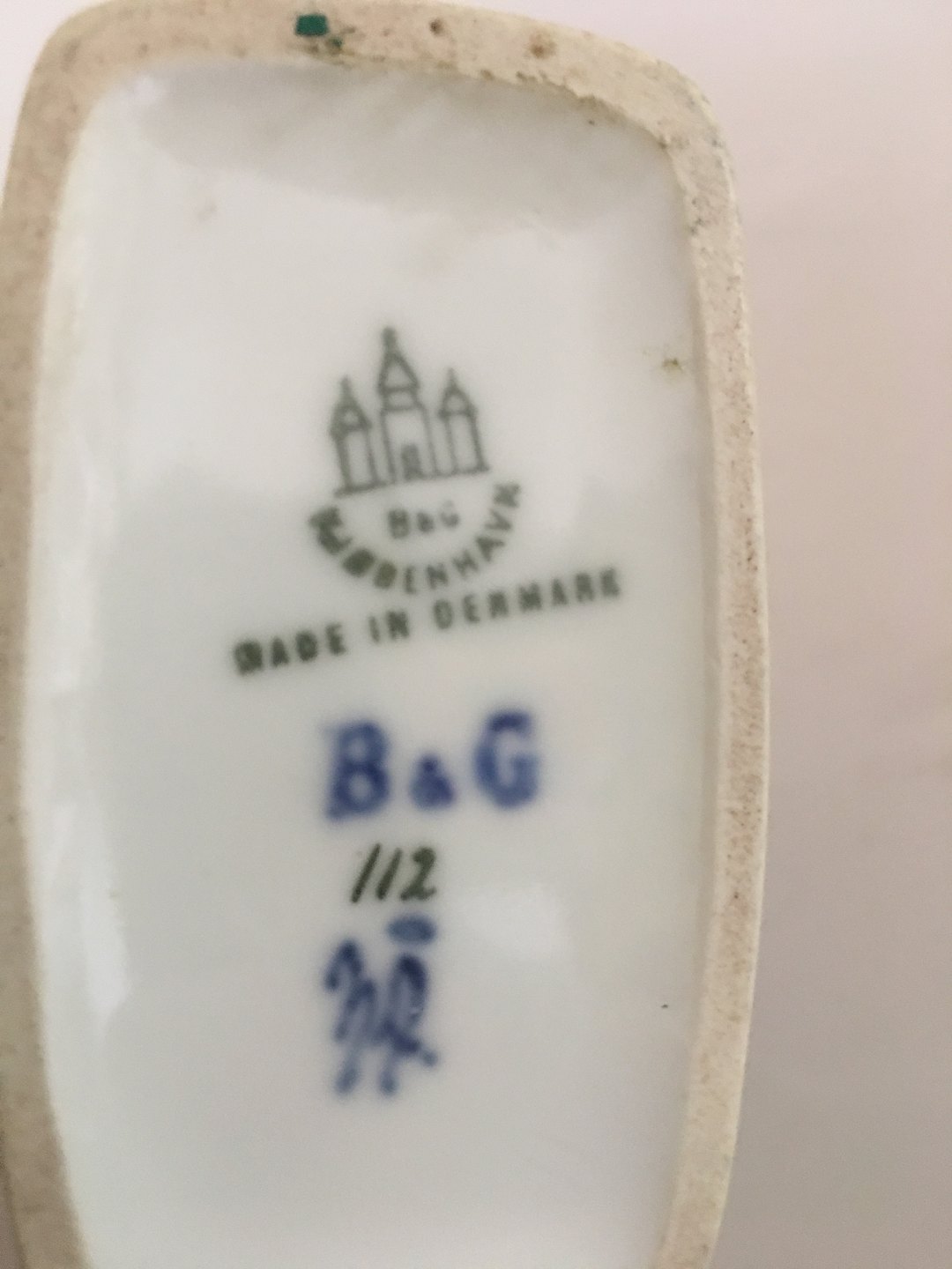 Bing & Grøndahl Art Nouveau Mindevase "Aux parlementaires francais de leurs confrères danois, Juillet 1909". B&G Stempel fra 1902-1914. 1. Sortering, fin hel stand 15 cm Høj. 11 cm Bred.