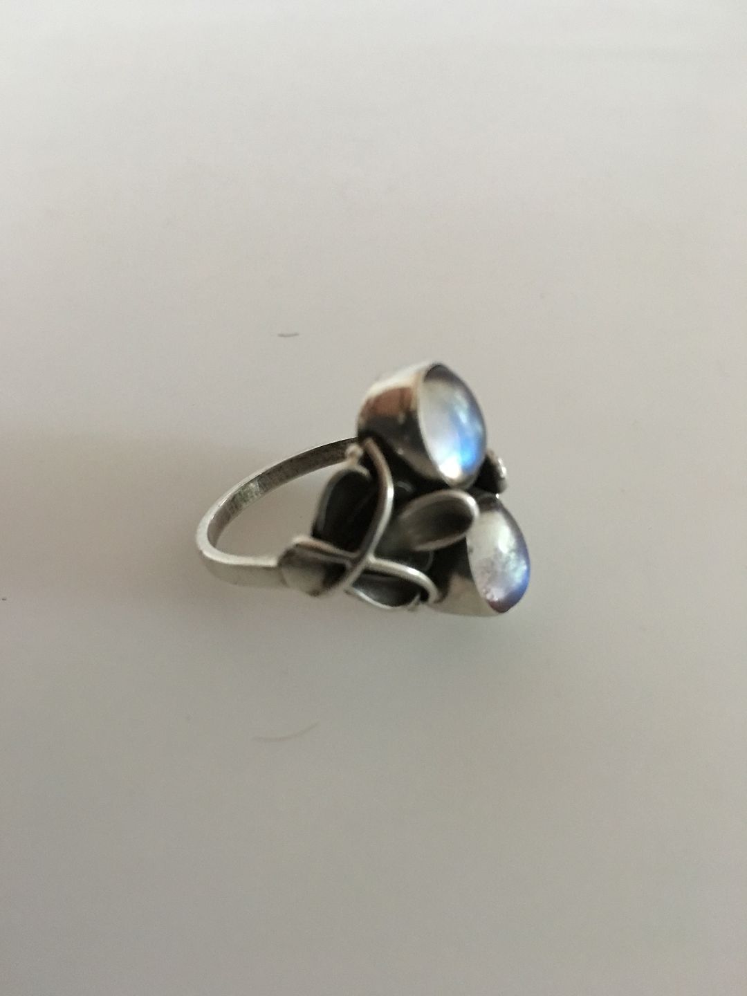 Georg Jensen Sterling Silver Ring No 48 with Moon Stones. Ring Size 58 / US 8 1/2. Manufactured after 1945. In nice condition.
