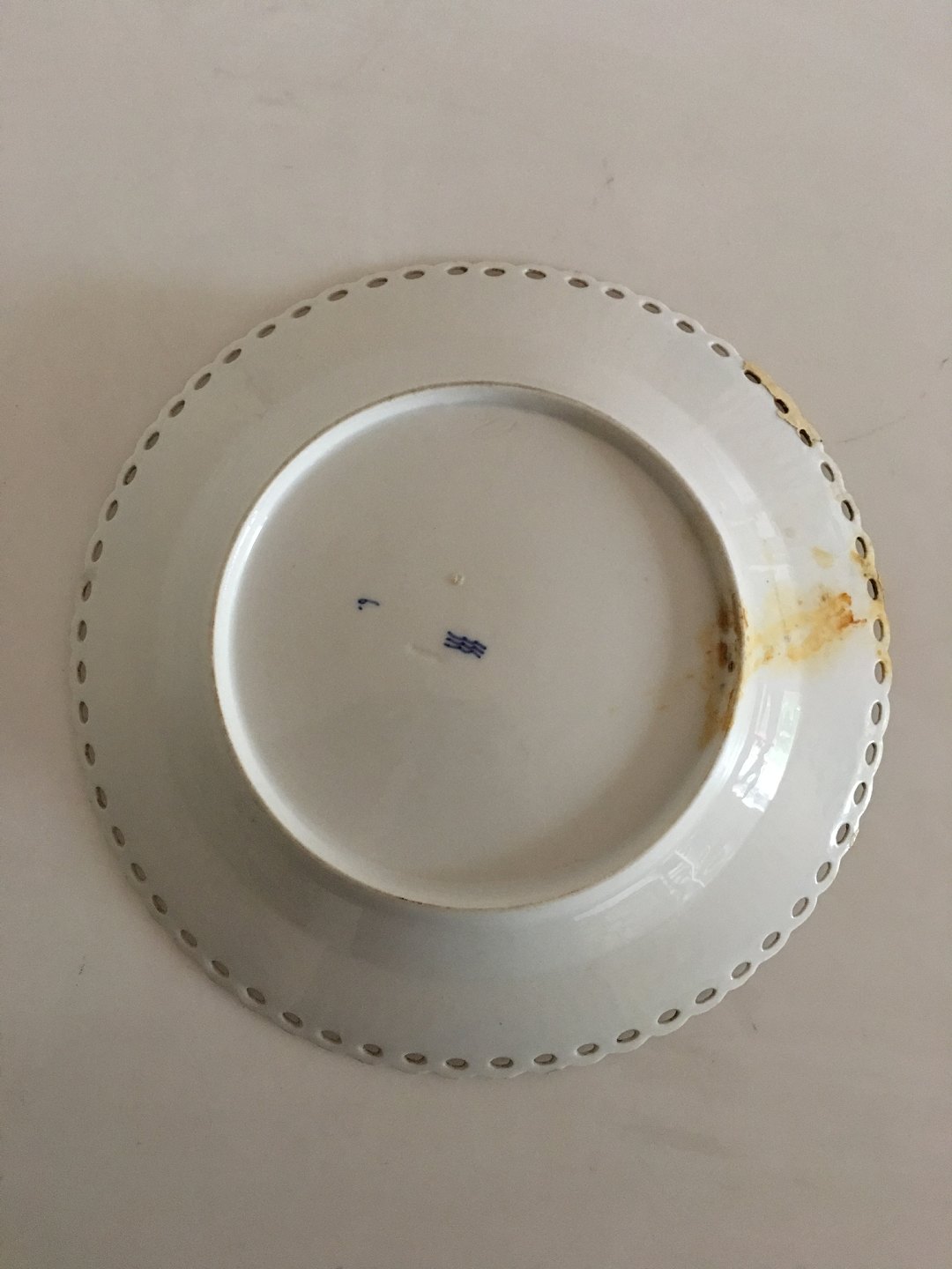Royal Copenhagen Antik Musselmalet Helblonde Tallerken. Måler 23.5 cm dia / 9 1/4 in. Skåret og repareret på en større del af blondekanten.