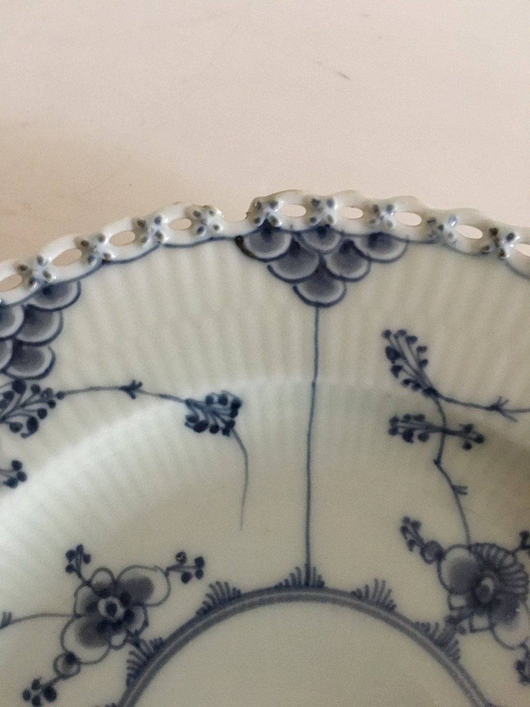 Royal Copenhagen Antik Musselmalet Helblonde Tallerken. Måler 23.5 cm dia. / 9 1/4 in. Har et skår på blondekanten, og desuden et par hårrevner og nogle skår på sættedelen.