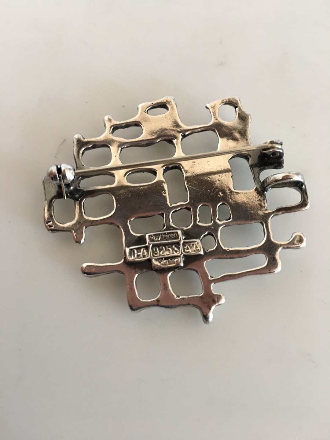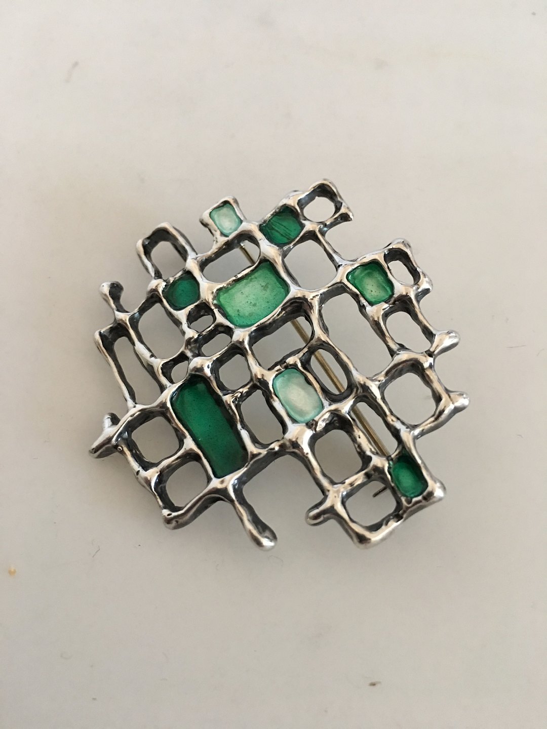 David Andersen Sterling Silver Brooch with Green enamel. Measures 4.6 cm / 1 13/16 in. dia. In great condition.