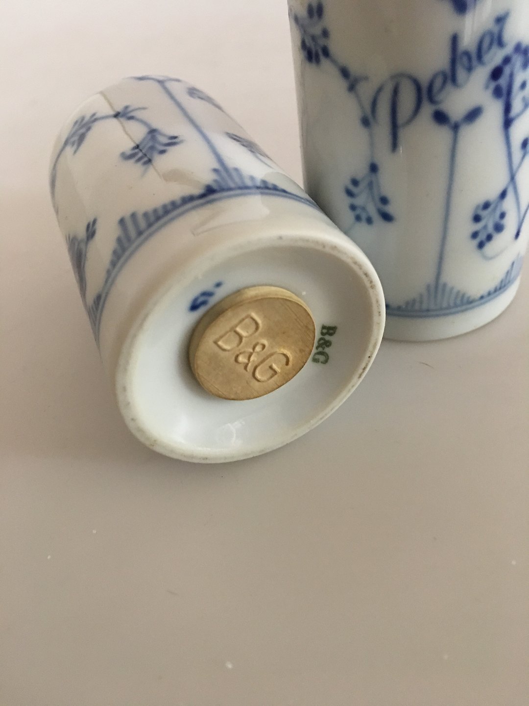Bing & Grondahl "Blue Painted Blue Fluted" Salt and Pepper Set. 6.5 cm High
