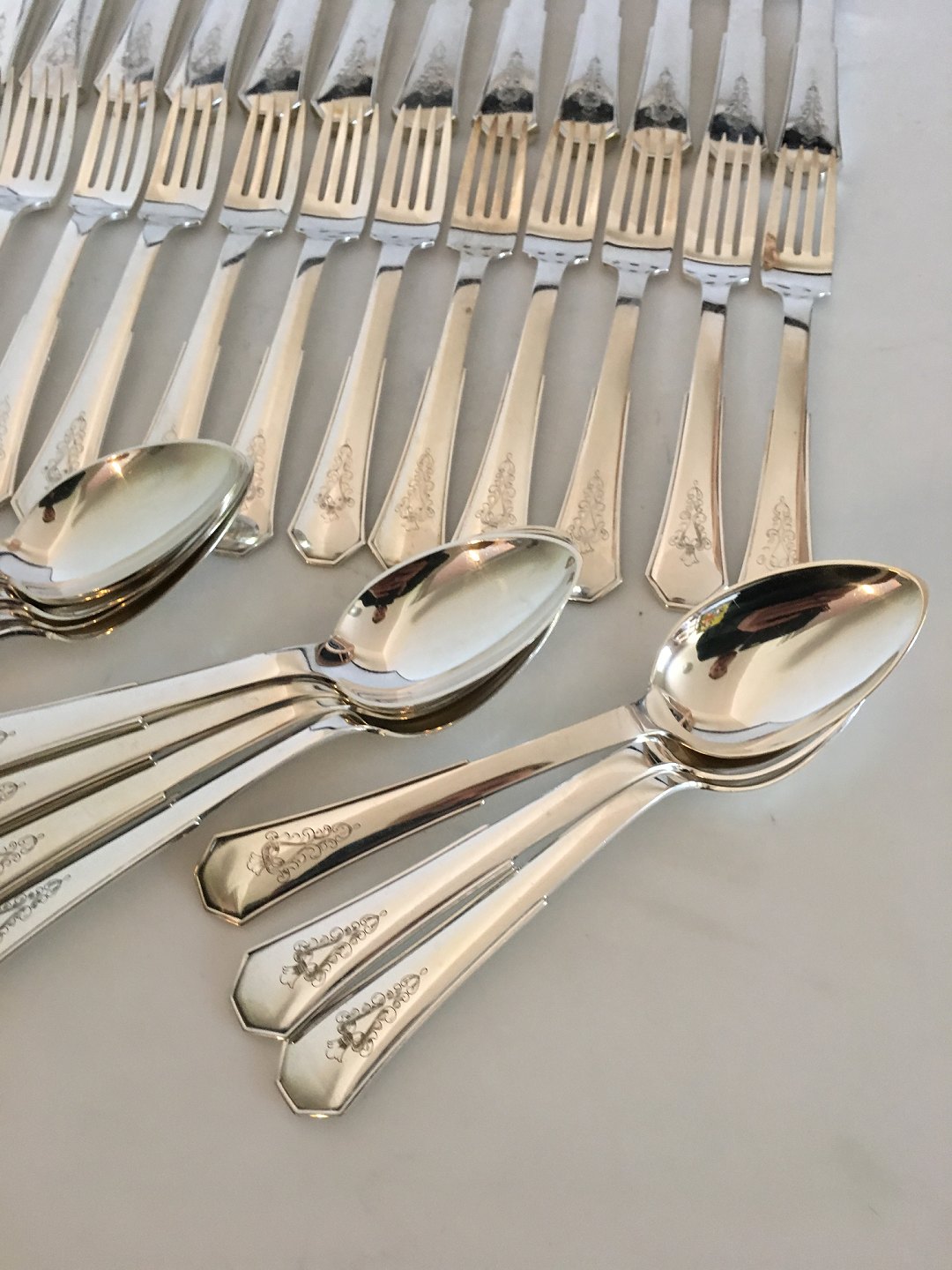 Hans Hansen Arvesølv No. 8 Bestik Sæt til 12 Pers. 36 Dele. Sættet består af følg.;
