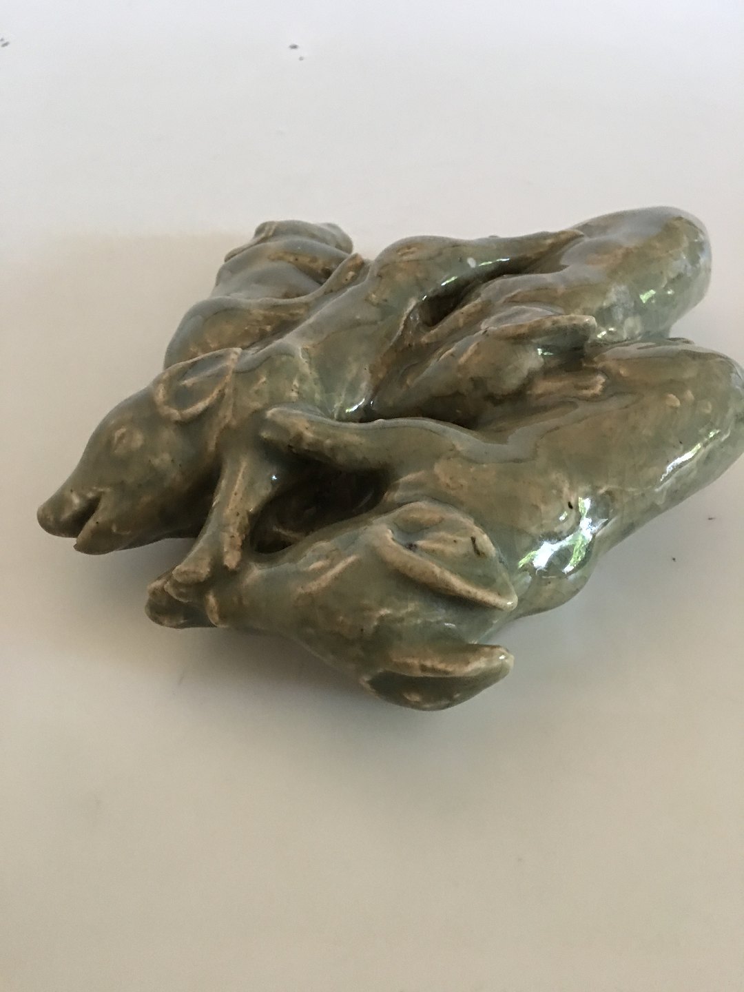 Bing & Grøndahl Stentøjs Figur No. H654 med 4 Grise af Mogens Bøggild. Måler ca. 24 x 21 cm. I pæn stand. Mini afslag på munden på en gris