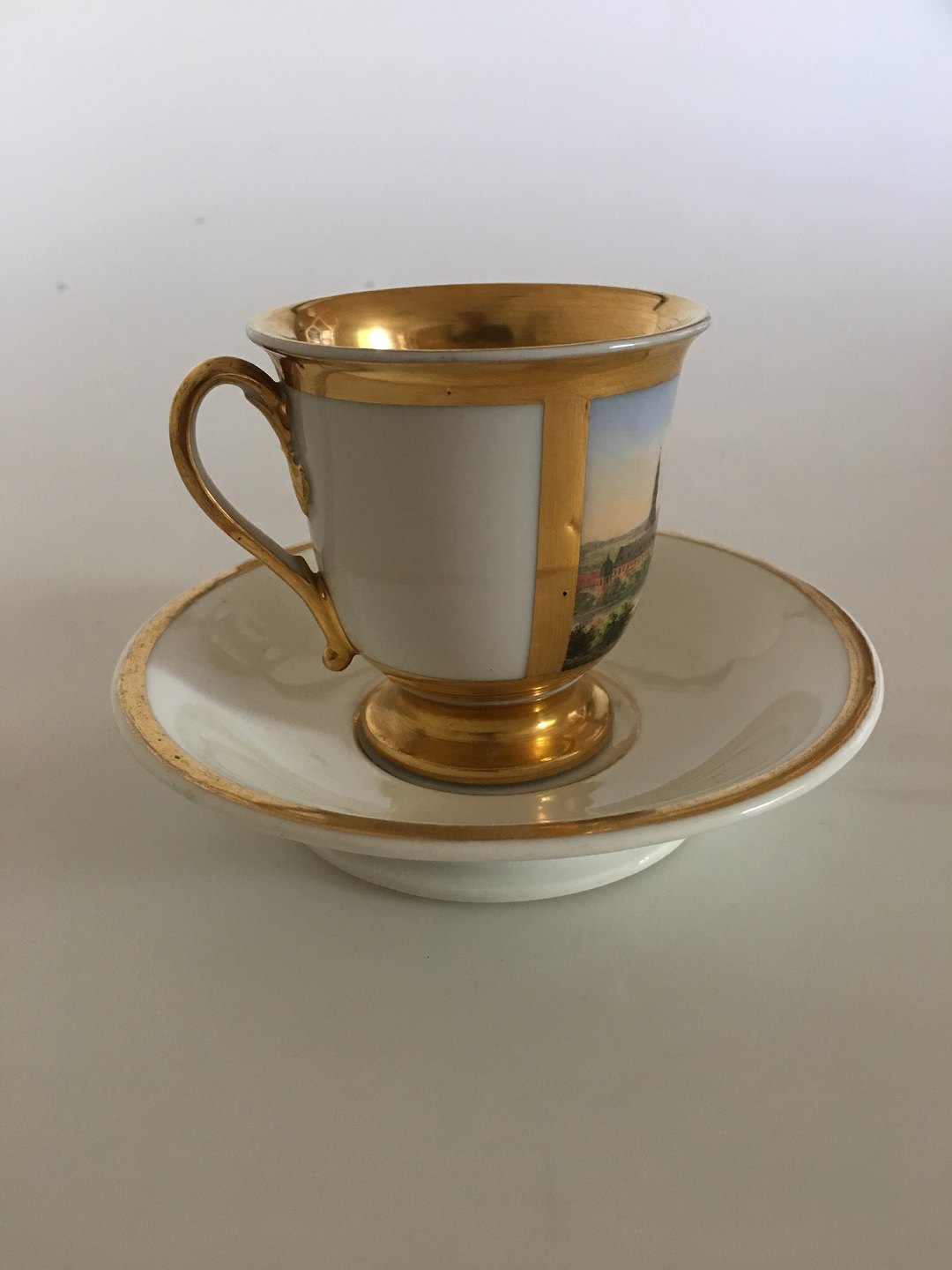 Royal Copenhagen Empire Cup with motif of Frederiksberg Castle by Christian Klein from 1820-1850.