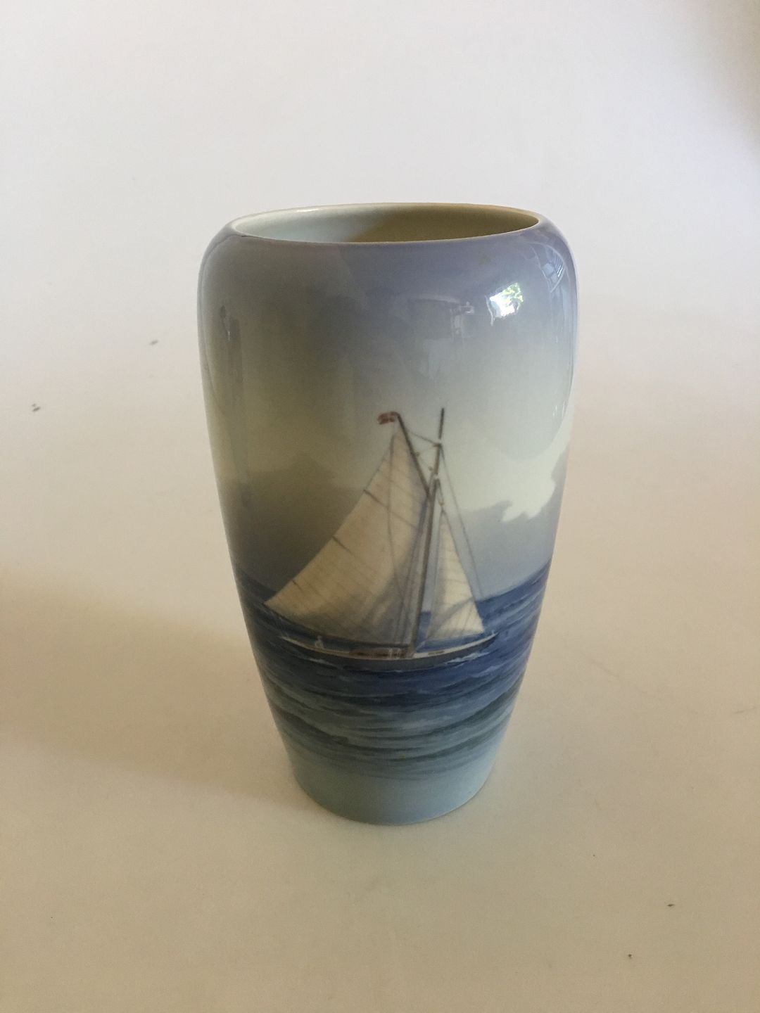 Royal Copenhagen Art Nouveau Vase No. 1484/237. with Ship Motif. 19 cm H. 2nd Quality. In nice whole condition.