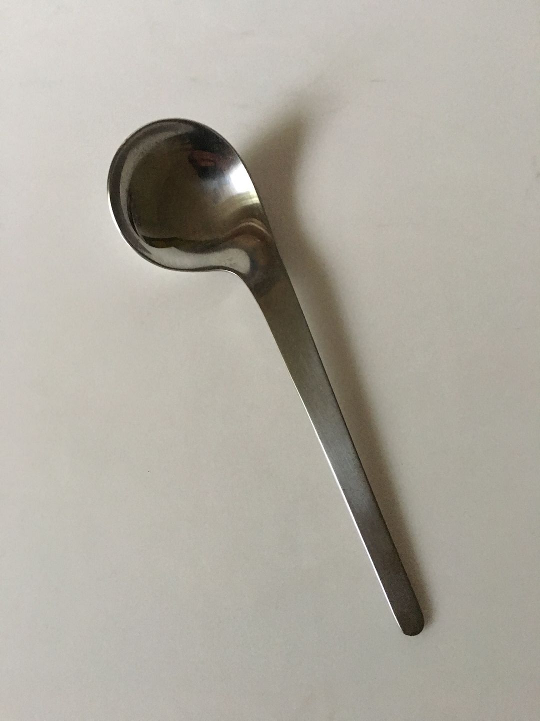 Georg Jensen Stainless "Arne Jacobsen" Right Handed Soup Spoon. Measures 16.5 cm / 6 1/2 in.