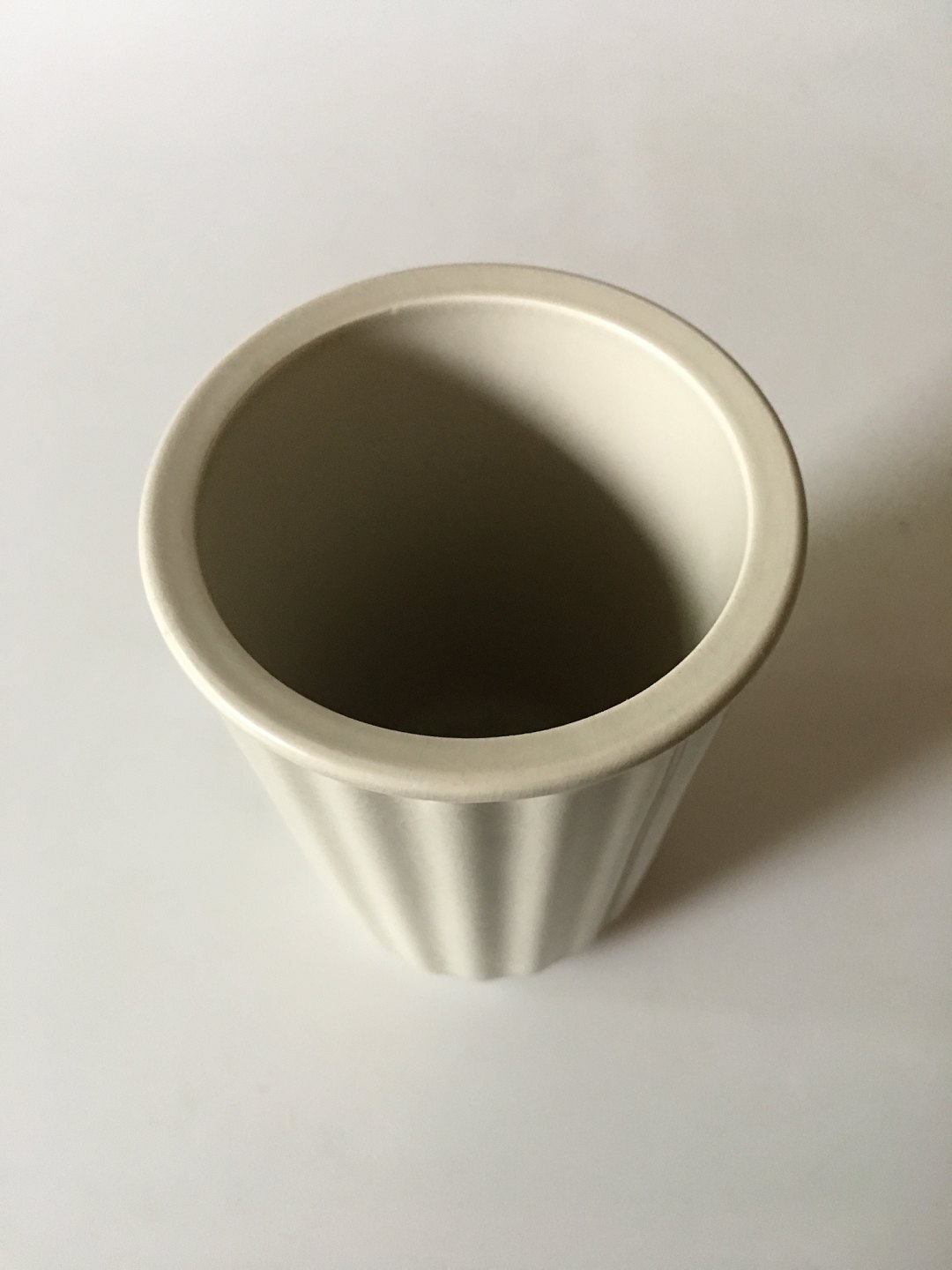 Aluminia Hvid Rillet Vase. 12.5 cm H. 8.5 cm H.