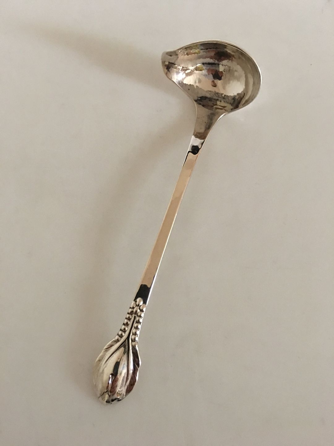 Evald Nielsen No. 3 Sølv Smørsauceske. 14.5 cm L. Fra 1921.