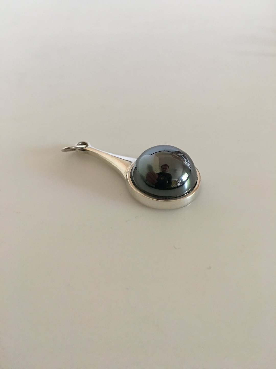 Georg Jensen Sterling Silver Pendant No 156 with Hematite Stone. Measures 4 cm / 1 37/64 in. Weighs 16 g / 0.55 oz.