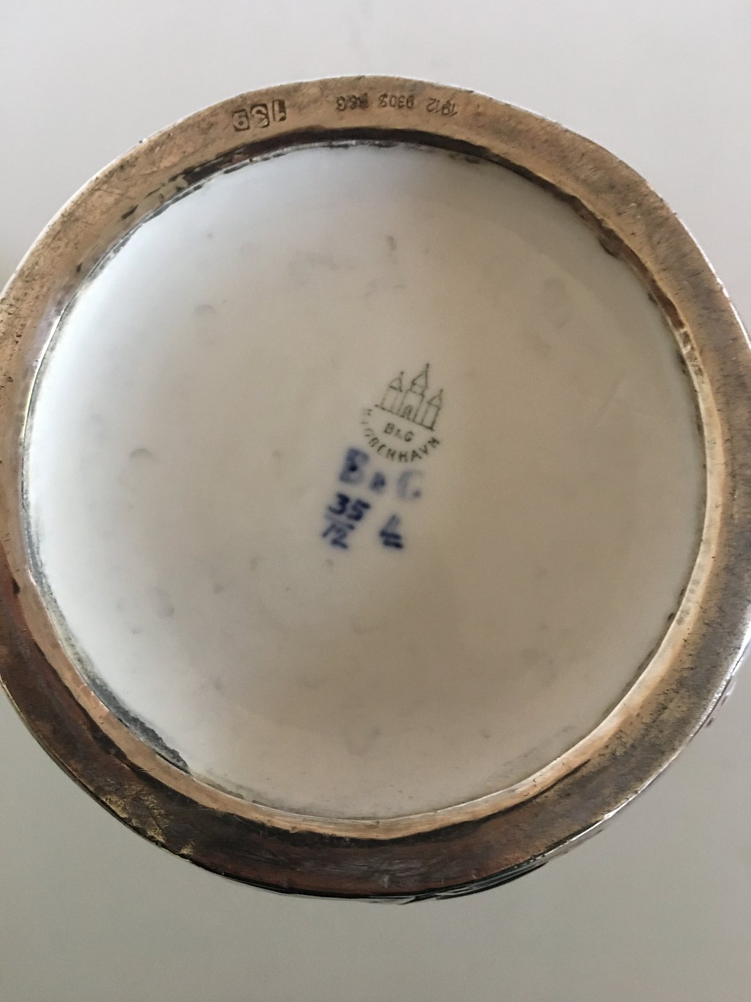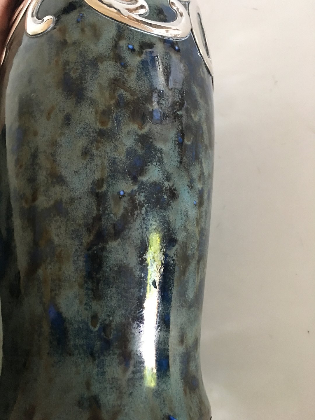 Bing & Grondahl Unique vase with Silver mounting by Lotte Lindahl from 1913 in running glaze.