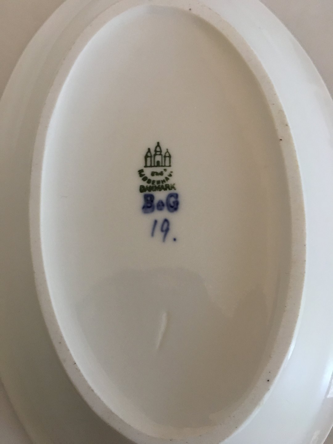 Bing & Grondahl Jubilee Dinner Service. Oval Dish. 23.5 x 15.5 cm. In fine condition. Created by Hans Tegner in 1928m B&Gs 75 year anniversary.