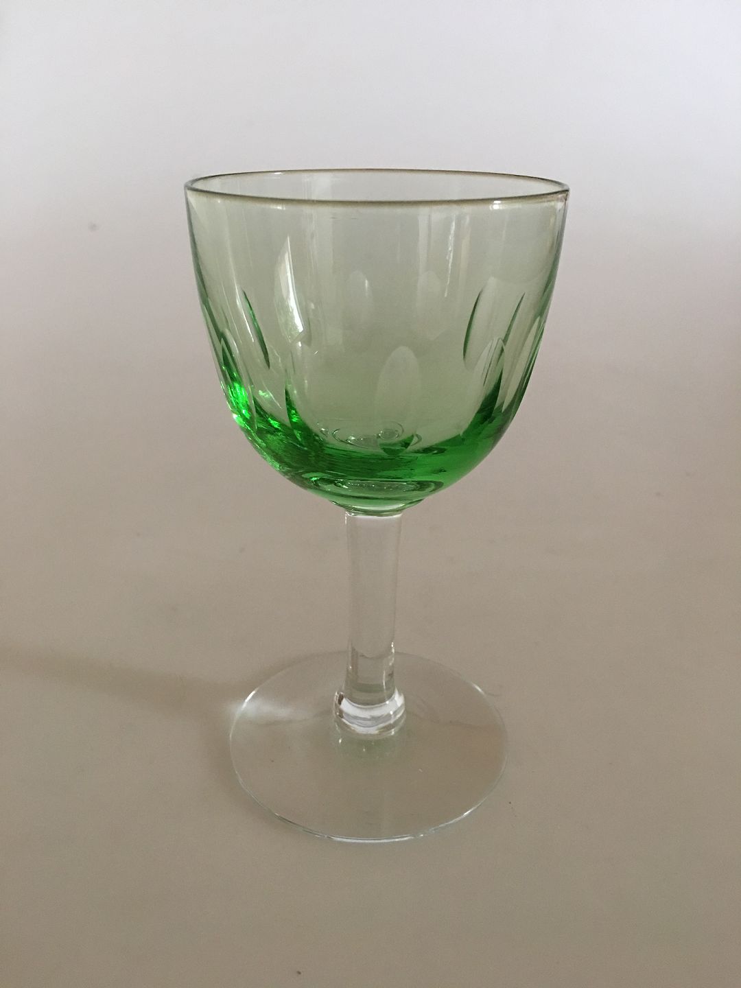 Holmegaard Murat Hvidvinsglas med Grøn Kumme 11.5 cm H. Ca. 6 cm dia. Oliver slibning og glat rund stilk. Fra 1900-1940
