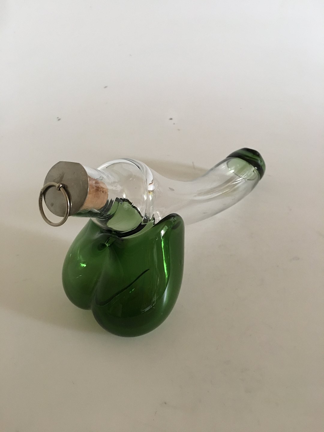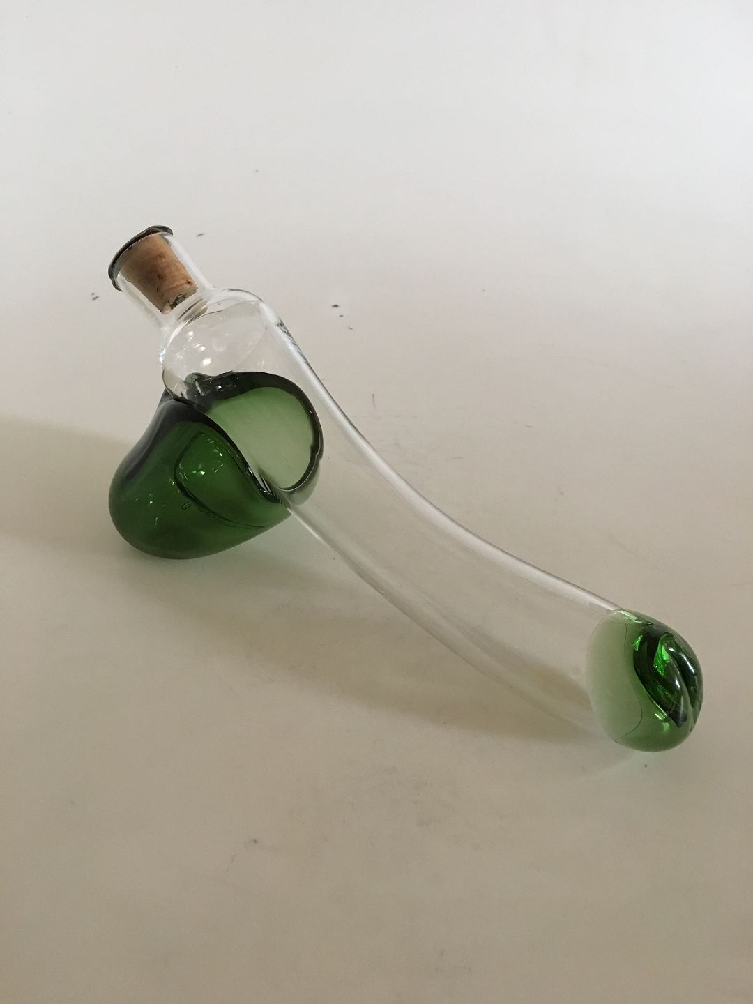 "Fallos" Karaffel med Grøn Deko designet af Kurt Jensen for Holmegaard. 14 x 31 cm.