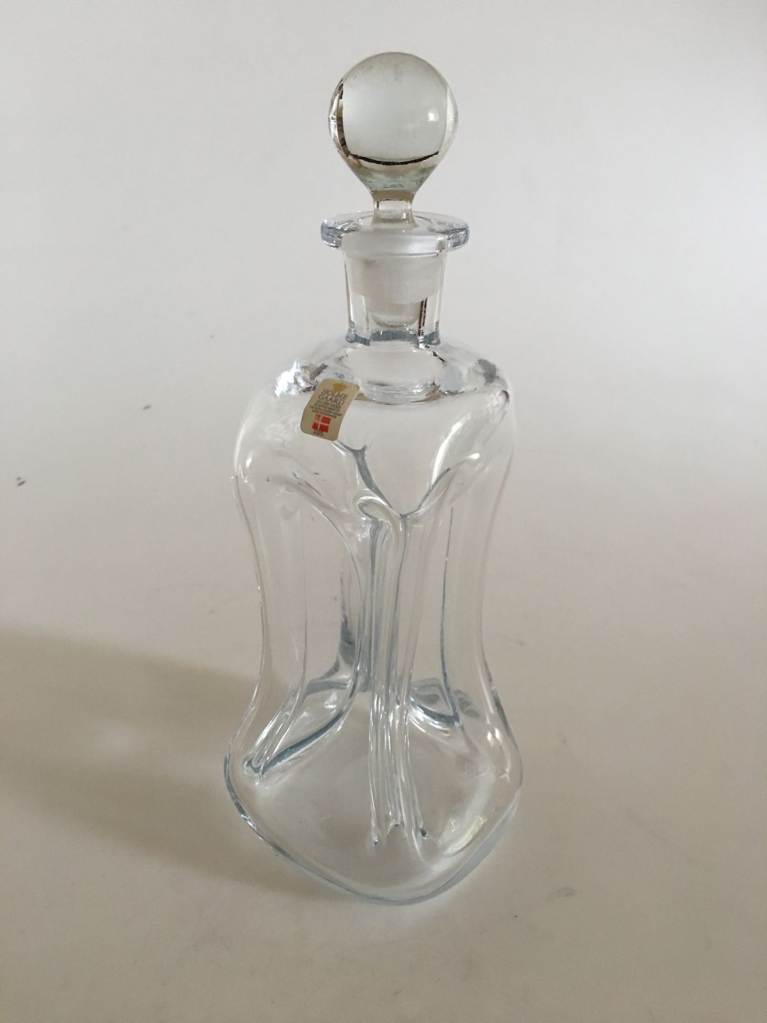Holmegaard Kluk Kluk Glas Karaffel i klart glas med indsugede sider og glas prop. 27 cm Høj. I fin stand.