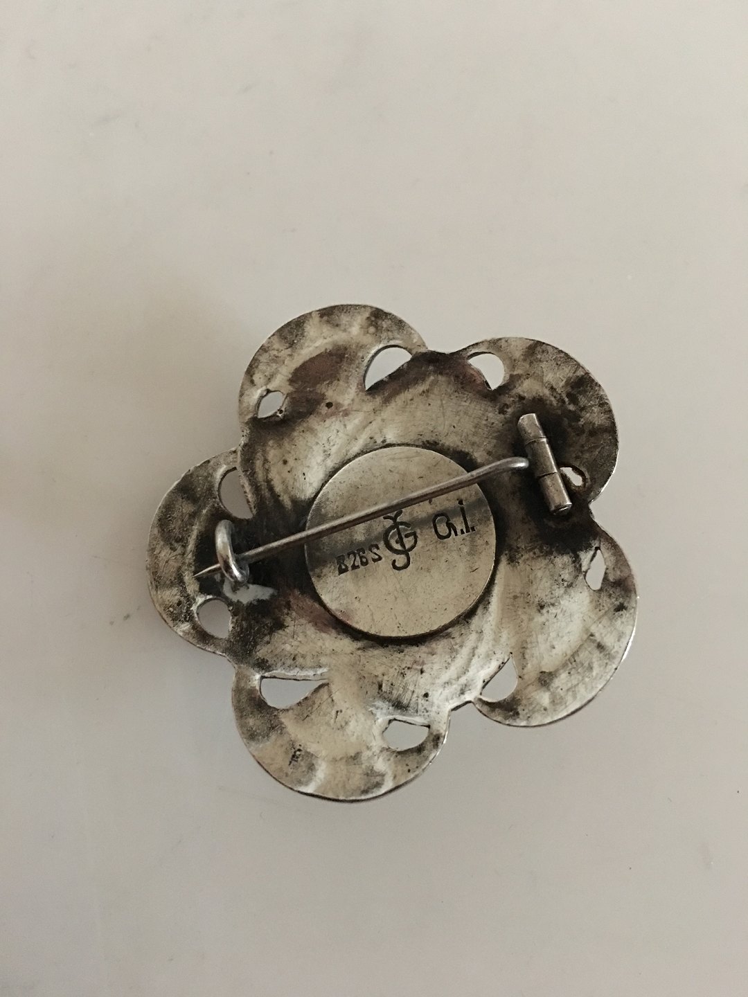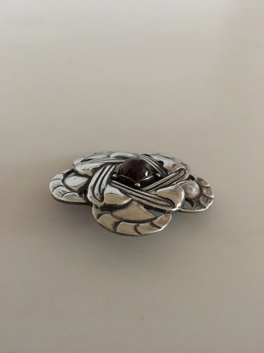 Tidlig Georg Jensen Sølv Broche med Rød Karneol. Måler 4 cm diameter. Vejer 12 gram. Produceret 1909-1914. I fin stand.