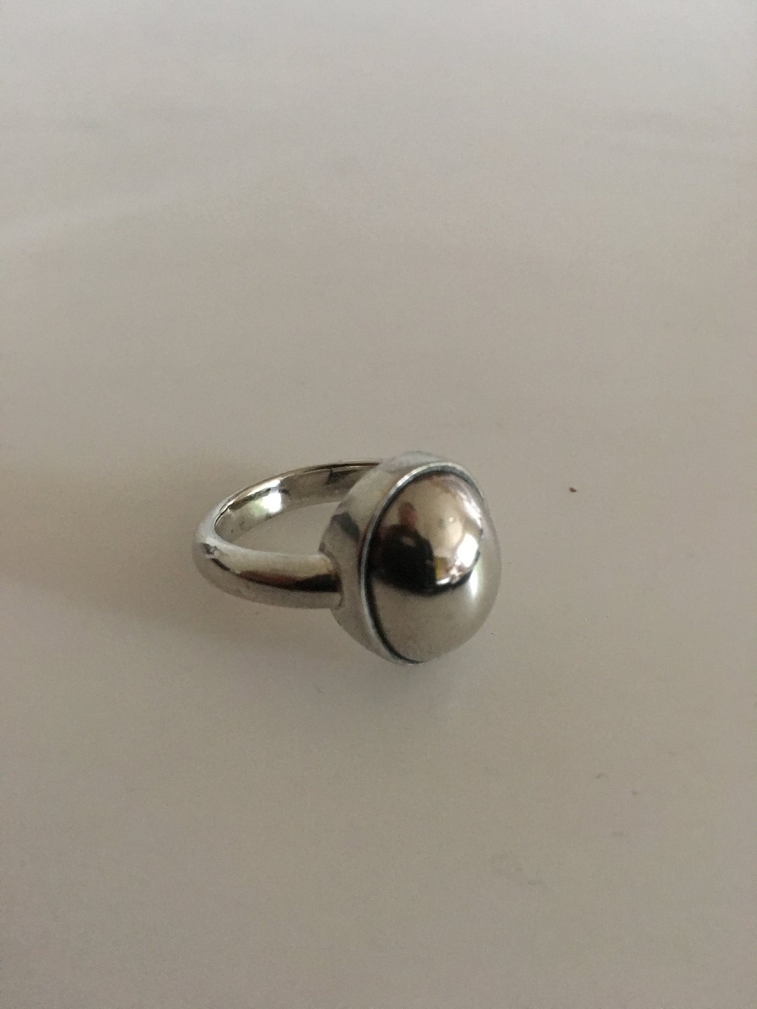 Hans Hansen Sterling Silver Ring. Ring Size 58 / US 8 1/2. Weighs 8 g / 0.30 oz. Oval silverstone measures 1.5 cm / 0 19/32 in.