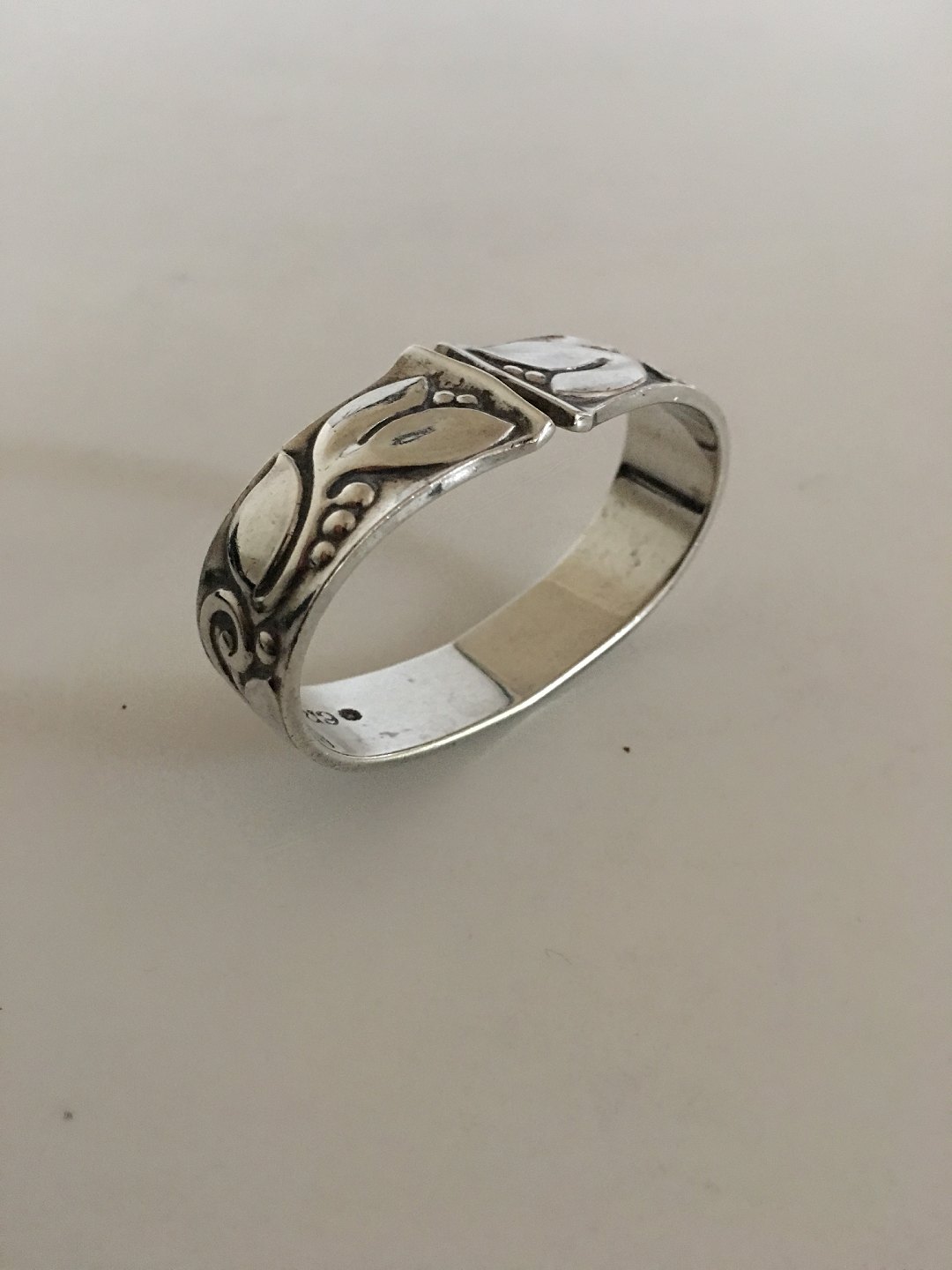 Evald Nielsen blomsterdekoreret Sølv Servietring. Måler 5.2 x 3.2 cm. 1.3 cm tykkelse.