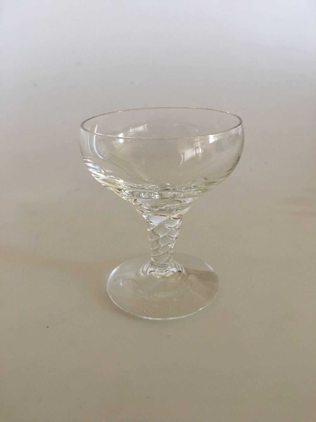 "Amager / Twist" Likørglas fra Kastrup Glasværk / Holmegaard. 7.5 cm H. Designet af Jacob E. Bang for Kastrup Glasværk i 1955, senere produceret af Holmegaard