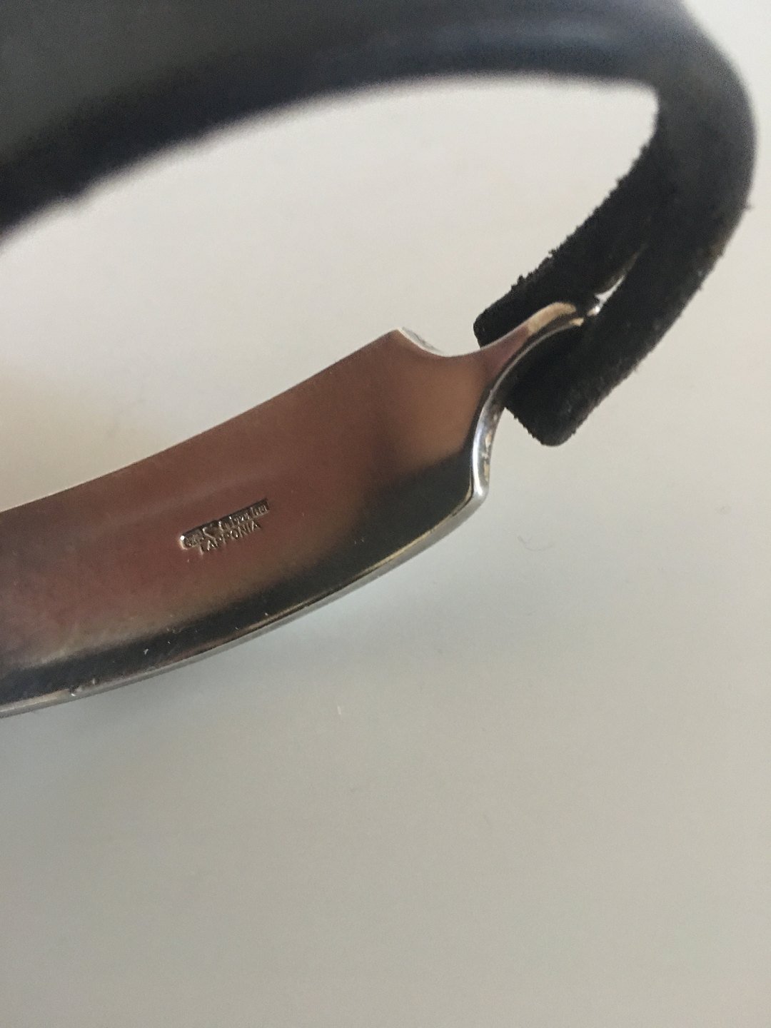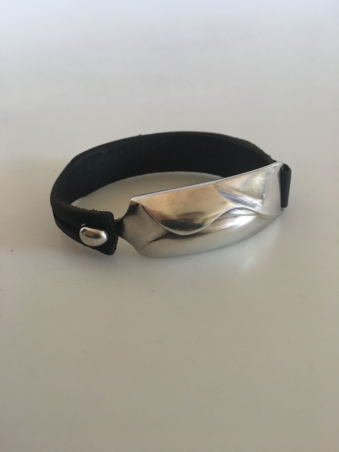 Lapponia Finland Leather Wristband with Sterling Silver Piece. Measures 18 cm / 7 3/32 in. Silver piece measures 5.5 cm / 2 11/64 in. x 1.9 cm / 0 4/4 in. Weighs 25 g / 0.90 oz.