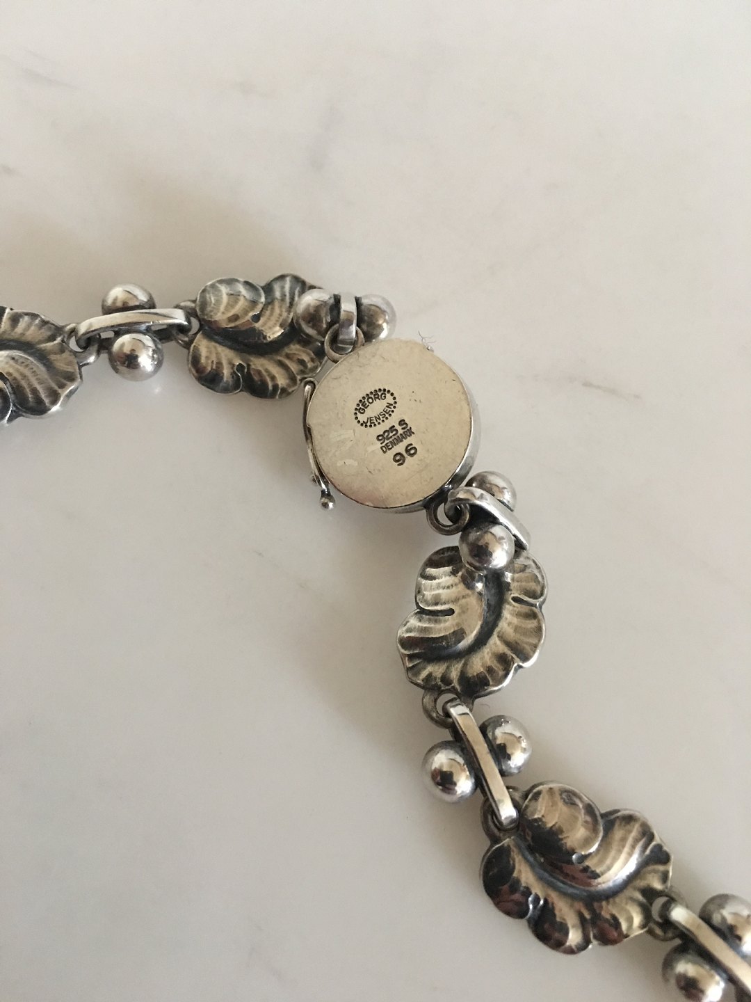 Georg Jensen Sterling Silver Necklace No. 96 with Grape Pendant Pieces. Measures 48 cm L. The pendant piece measures 6.8 cm L. Weighs 95 grams. Manufactured after 1945.