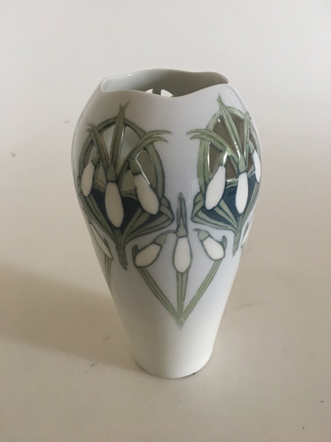 Royal Copenhagen Art Nouveau Vase gennembrudt og med motiv af Vintergækker No 470/256