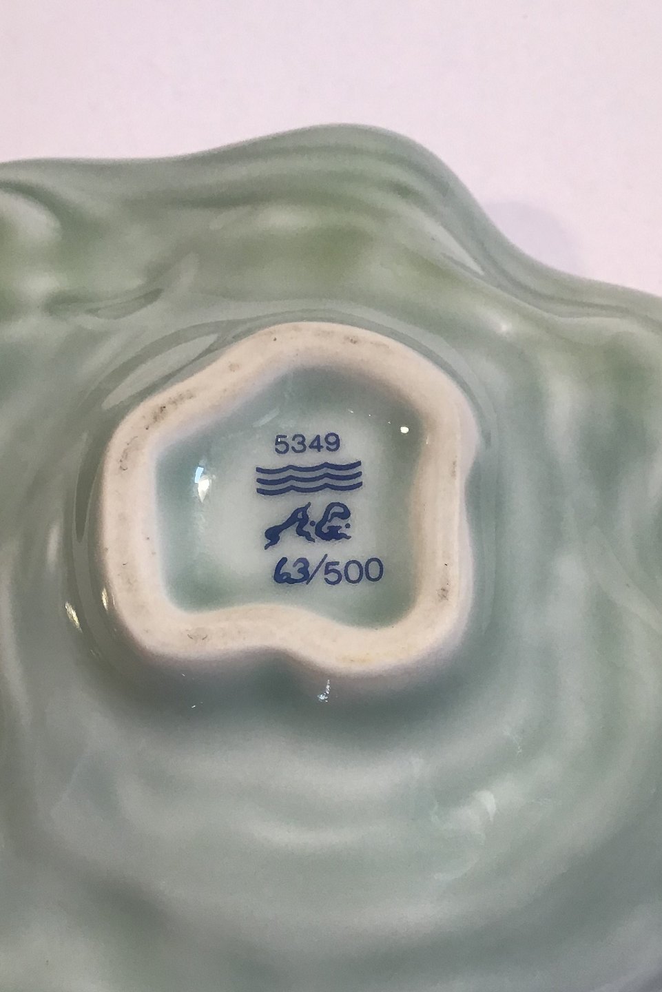 Royal Copenhagen Green Triton Bowl No. 5349 Limited Edition No. 63/500. 15 cm diameter. 4.5 cm H. Designed by Arje Griegst. Perfect condition.