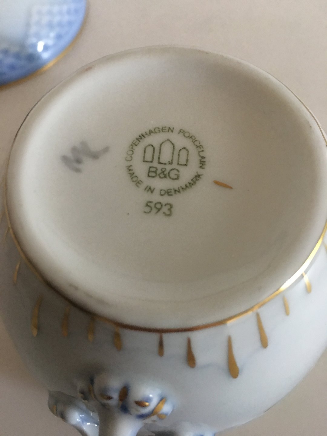 Bing & Grøndahl Måge med Guld Sukkerskål No 593/94A. Måler 9 cm diameter (3 35 /64 in). I fin stand.