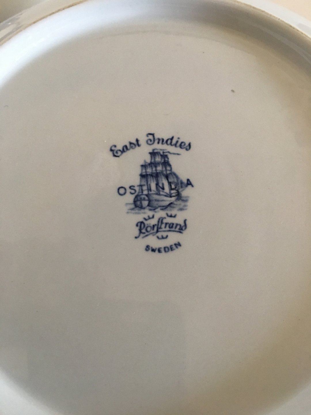 Ostindia / East Indies Rorstrand Butter Jar with Lid / Caviar Dish on Tray. 11.5 cm diameter bowl. 16 cm diameter saucer