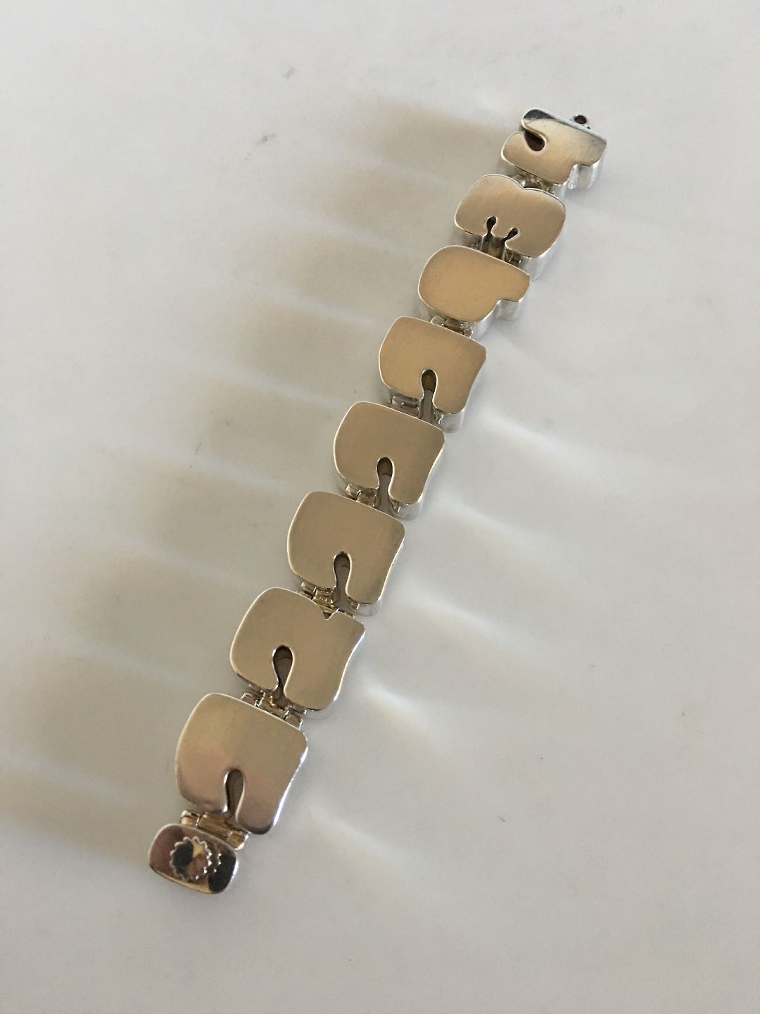 Hans Hansen Sterling Silver Modernist Bracelet with Number Links. Measures 19 cm x 2.3 cm. Weighs 90.3 g / 3.19 oz.