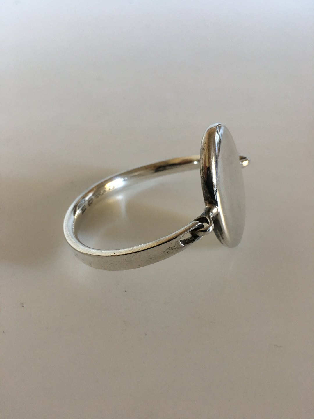 Georg Jensen Sterling Silver Modernist Torun Bracelet No 230. Measures 6 cm / 2 23/64" inner diameter. Oval silver plate measures 3.6 cm / 1 27/64". Weighs 37 g / 1.35 oz.