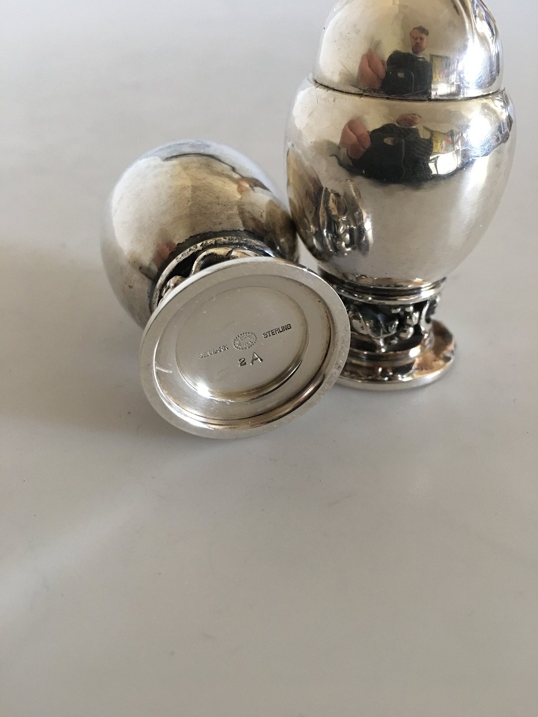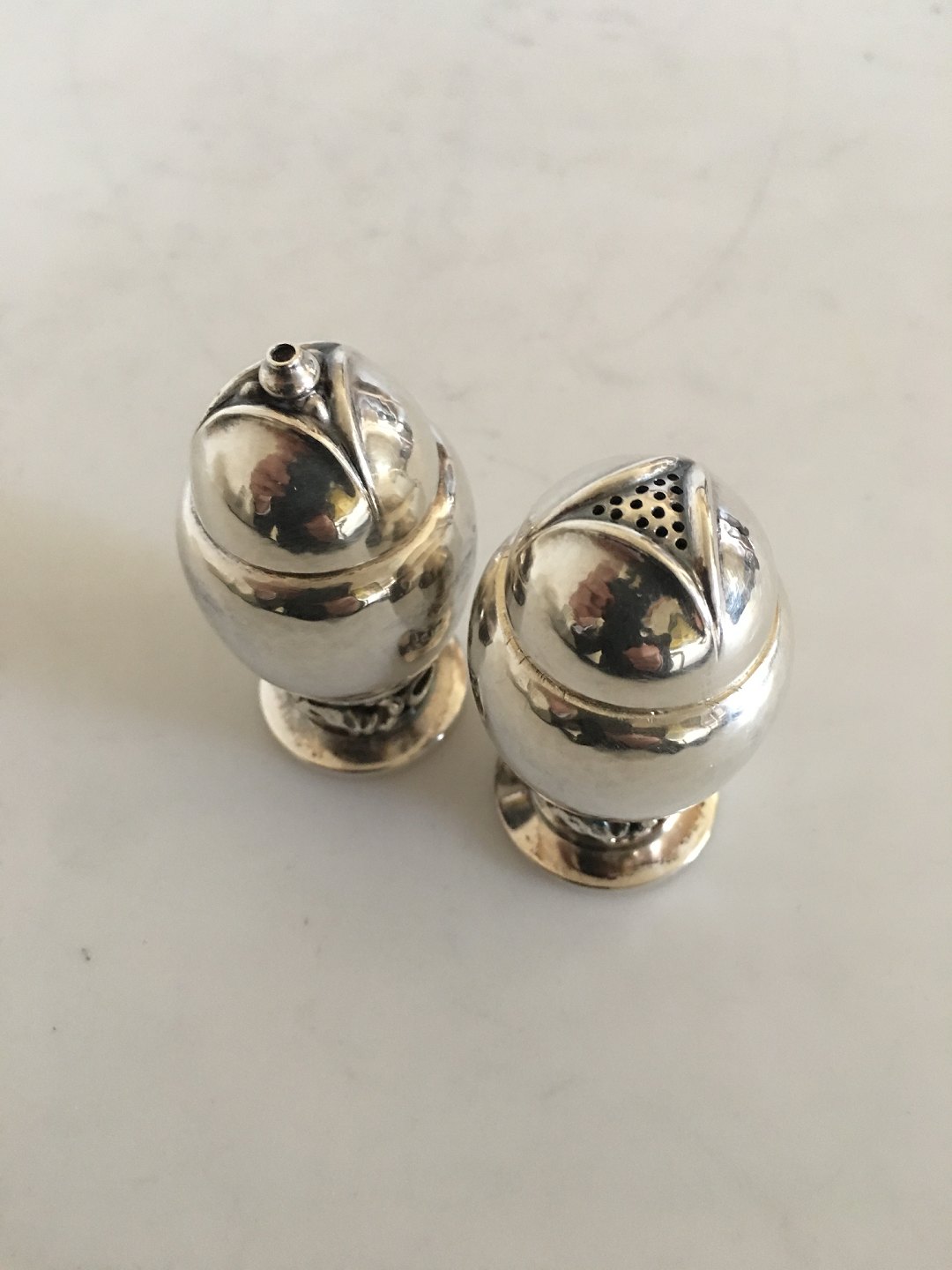 Georg Jensen Magnolia Salt & Peber Sæt No 2A. Måler 6 cm i højden. Vejer tilsammen 82 gram.