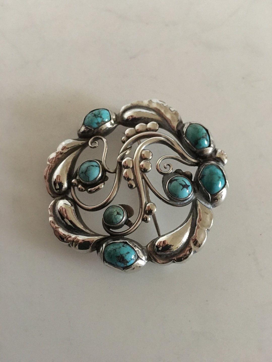 Georg Jensen Sterling Silver Brooch No 159 ornamented with Turquoise