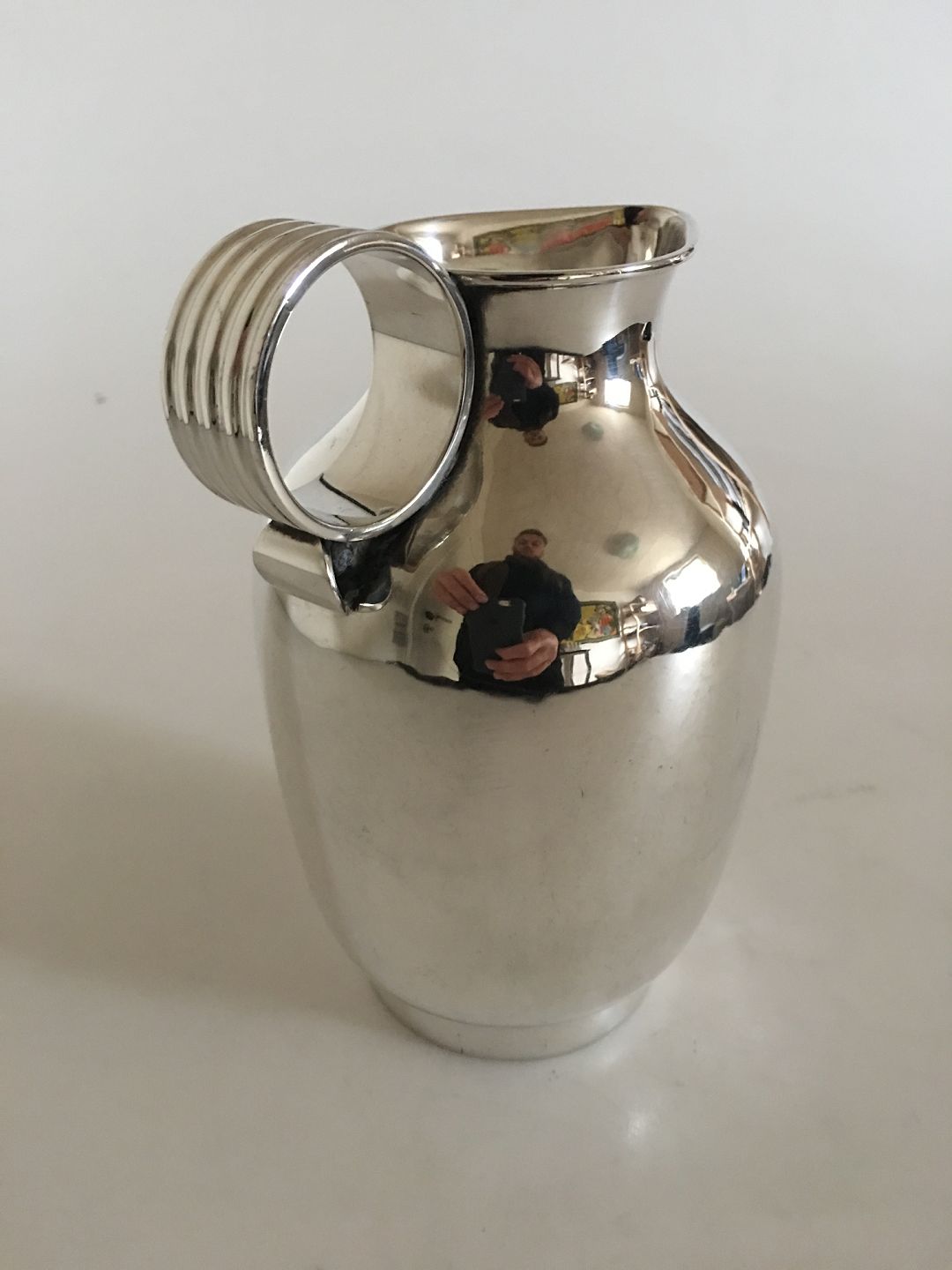 Georg Jensen Sterling Sølv Kande No. 744 designet af Gustav Pedersen. 16.5 cm Høj. Vejer 461 gram. Produceret efter 1945.