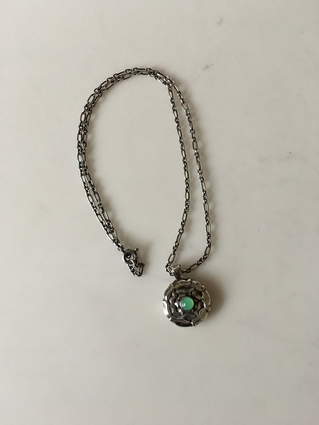 Georg Jensen Sterling Silver Necklace with Green Stone