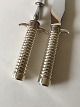 Georg Jensen Forskærer Sæt No. 14 designet af Sigvard Bernadotte. Håndtag i Sterling Sølv, Blad og Gaffel i rustfrit stål. Gaffel måler 26.5 cm L. Kniv måler 31.5 cm L.