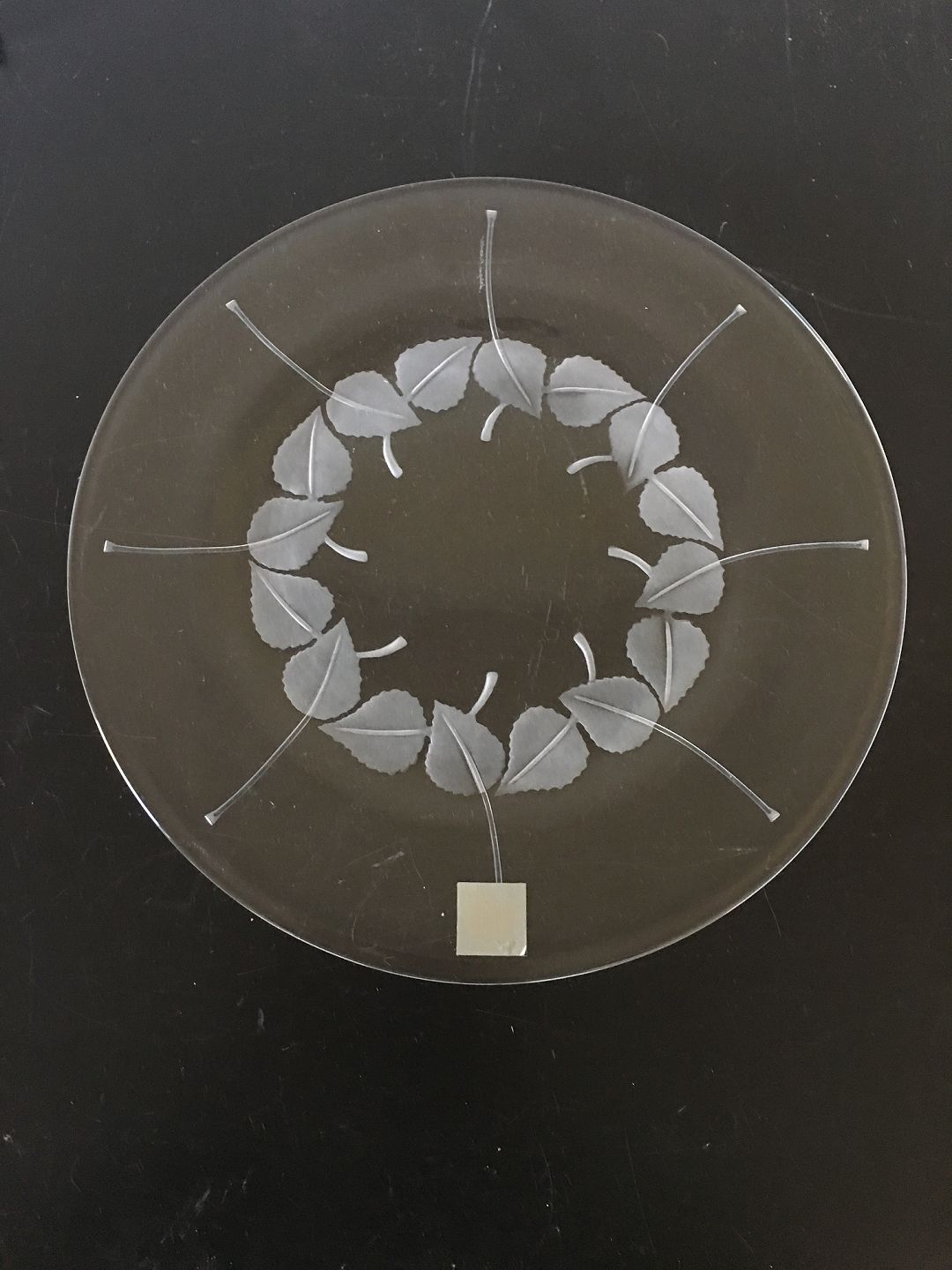 Lalique Glass Platter with Leaf Ornament. Measures 32 cm (12 19/32") In good condition. Has a few tiny scratches.