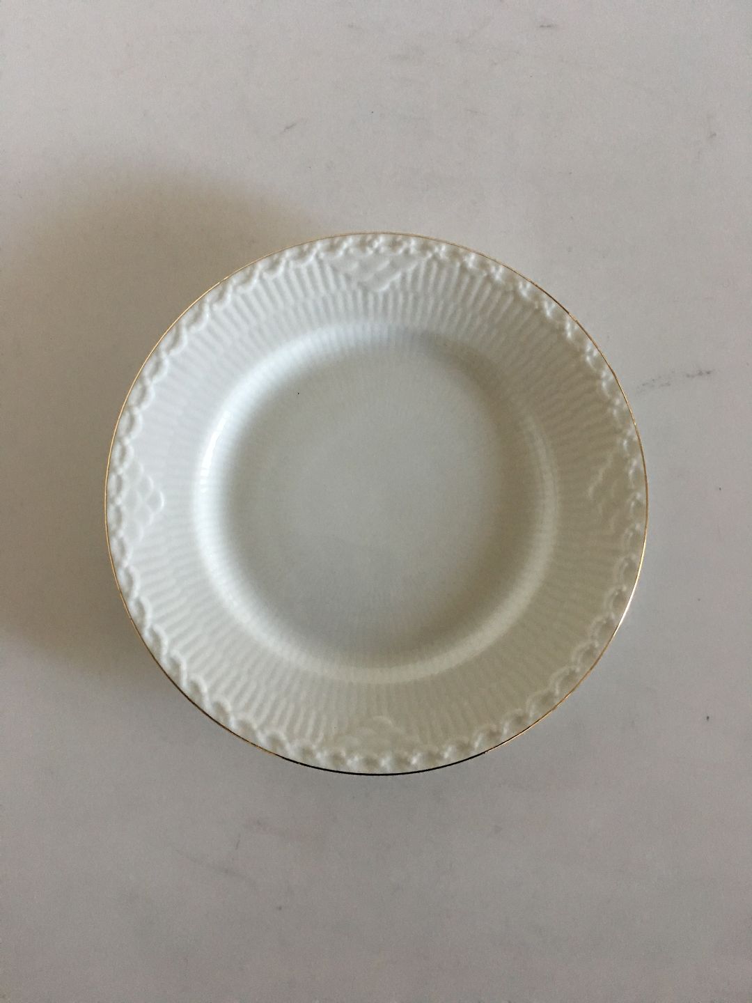 Royal Copenhagen Tradition Hvid Halvblonde m. Guld Sidetallerken No 575. Måler 16 cm