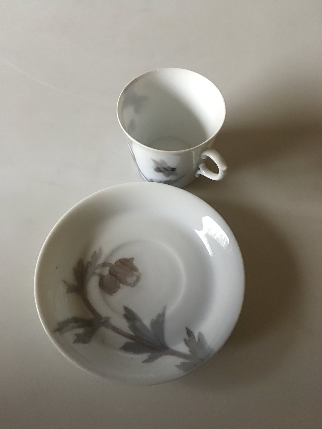 Royal Copenhagen Art Nouveau Mocha Cup and Saucer. The cup has to Hairlines and a chip. The saucer is in great condition. Cup measures 5.2 cm H. 5.8 cm dia.