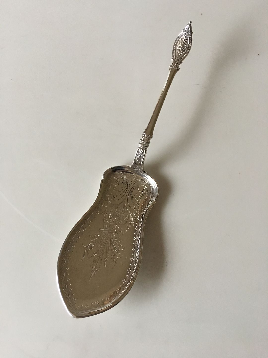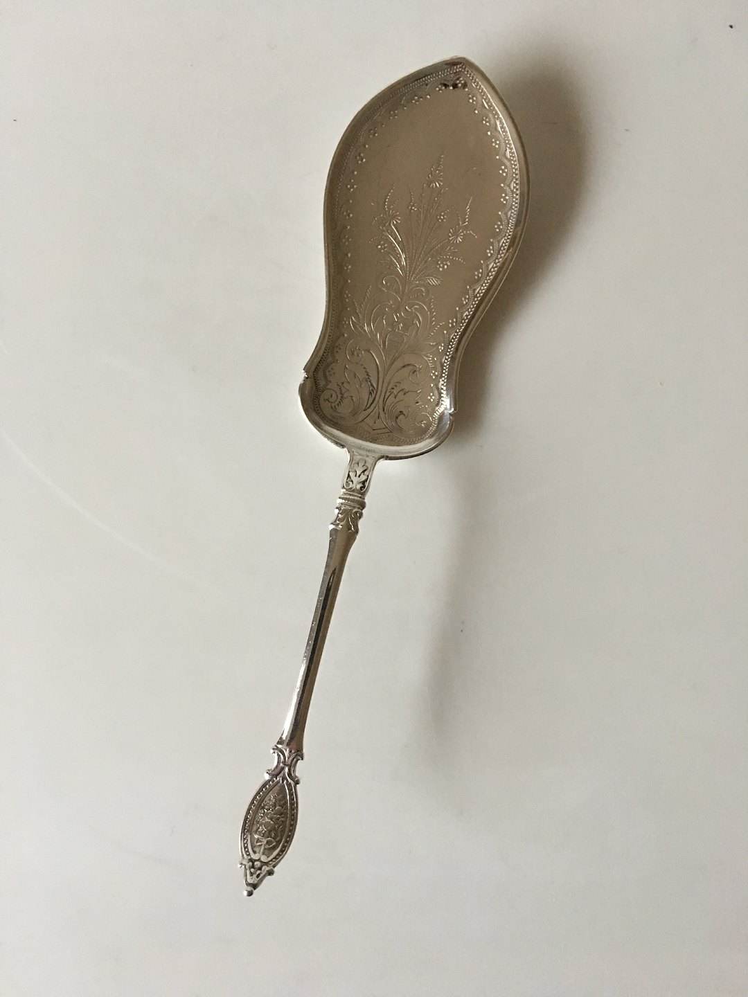 Beautiful Ornamented Server in Silver with Curved Grib. CAB. 22 cm L