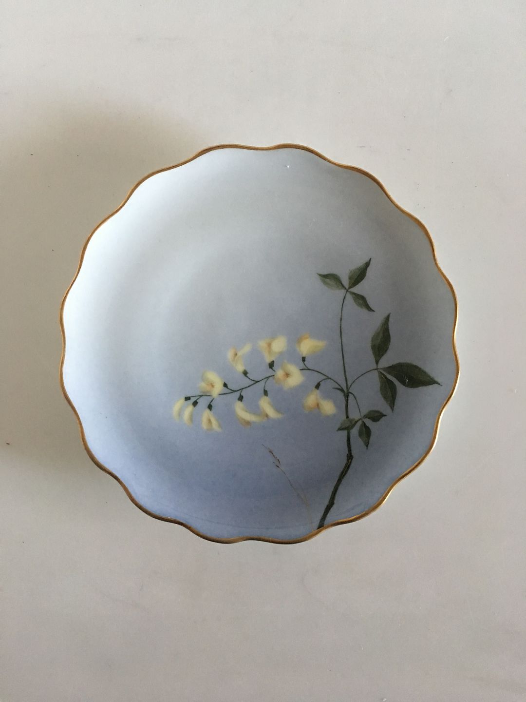 Bing & Grondahl Cake Plate with Flower Decoration and Goldrim. 17 cm diameter.