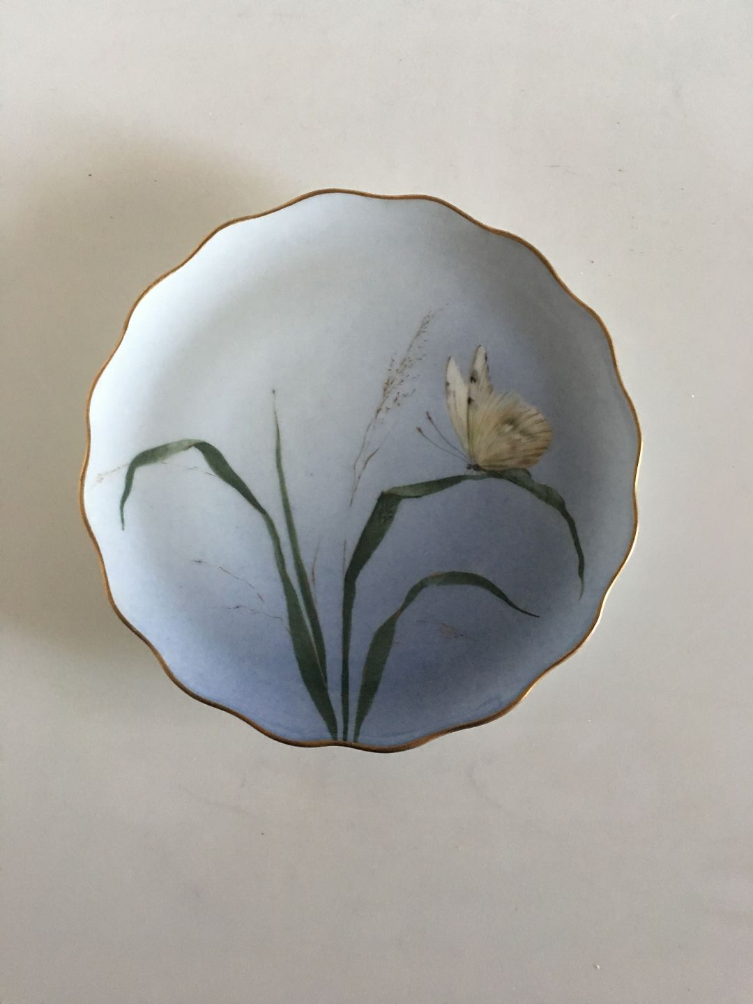 Bing & Grondahl Cake Plate with Flower Decoration and Goldrim. 17 cm diameter.