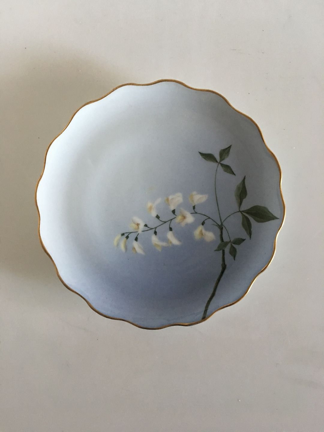 Bing & Grøndahl Kagetallerken med Blomster dekoration og guldkant. 17 cm diameter.
